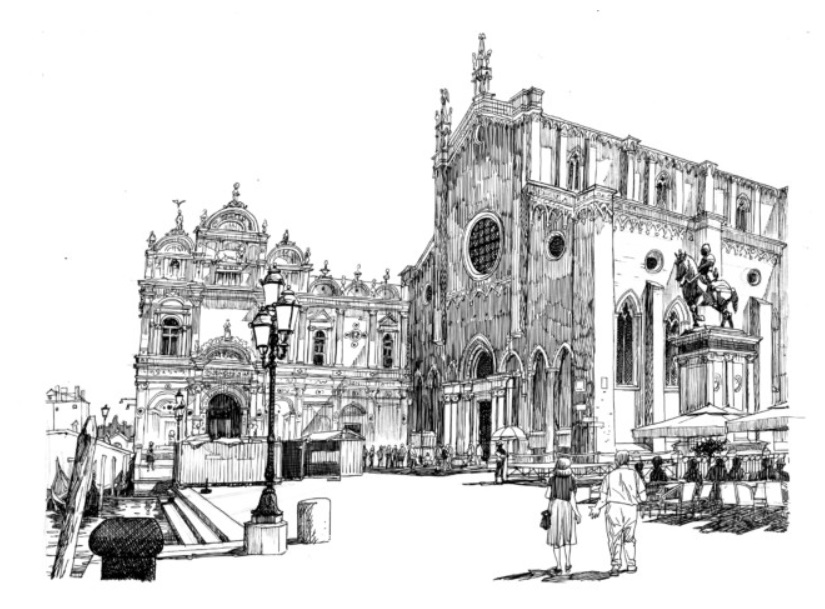 ps : ce dessin en n&b a été notamment publié dans "Venise sur les pas de Casanova", éditions Glénat 2018.