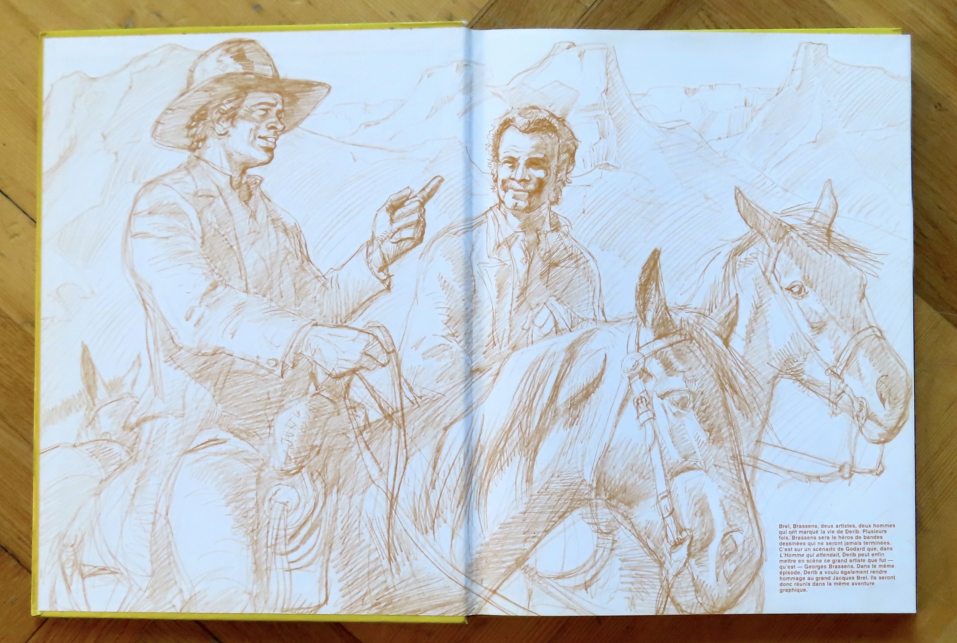 La première planche met en scène un cow-boy qui est la caricature de Georges Brassens.