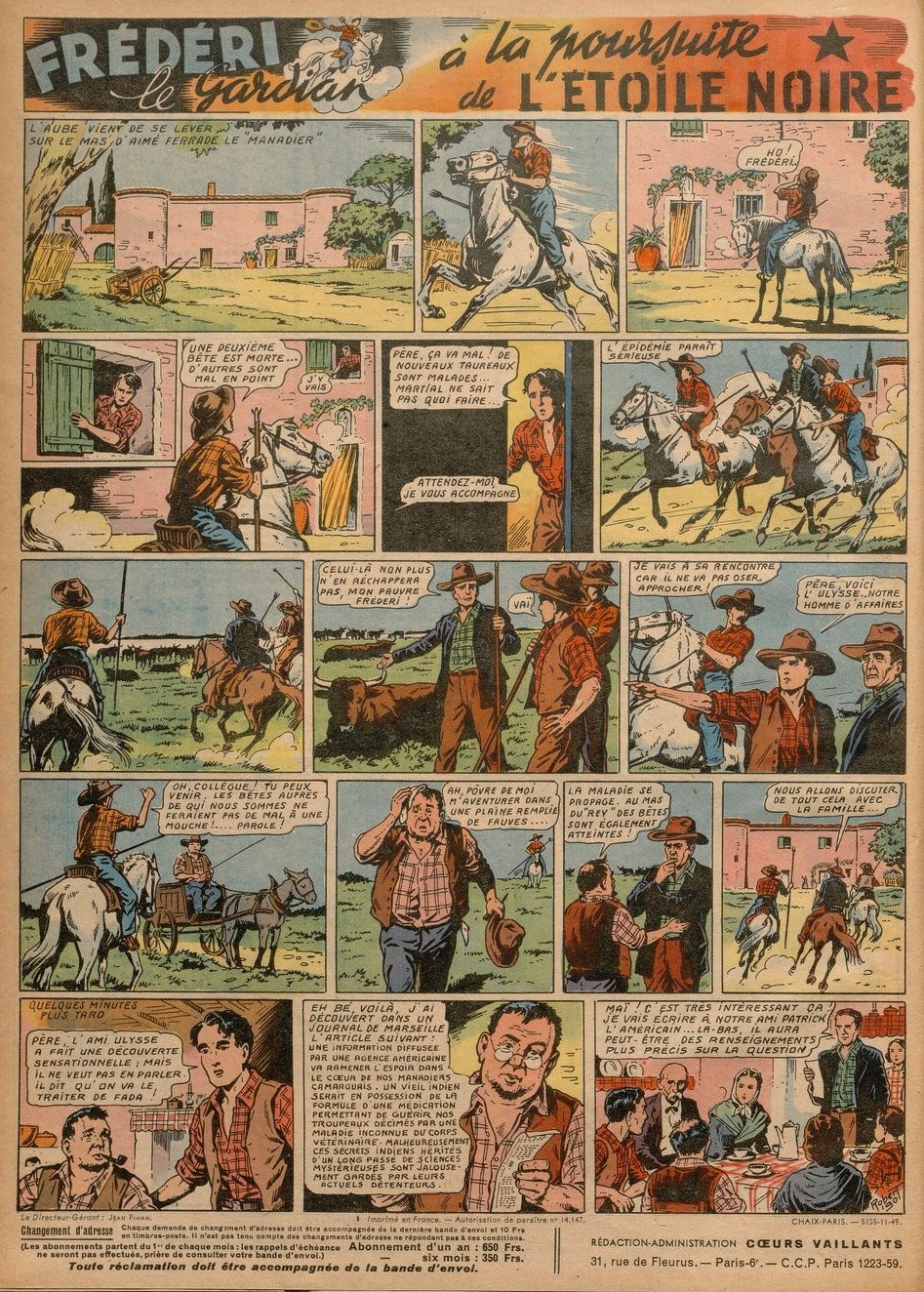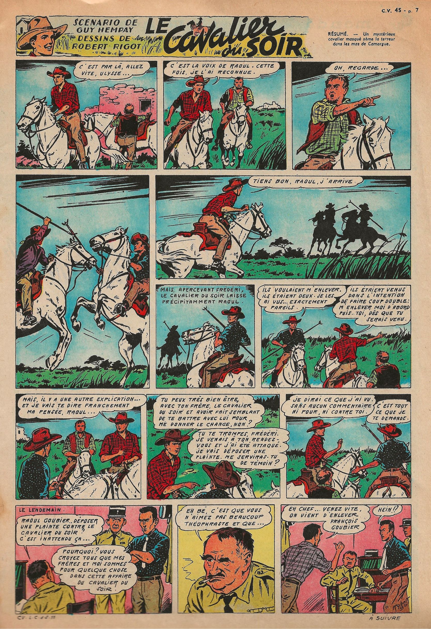 C'est dans le journal "Cœurs vaillants", destiné principalement aux garçons, que Robert Rigot illustra les aventures de Frédéri le gardian.