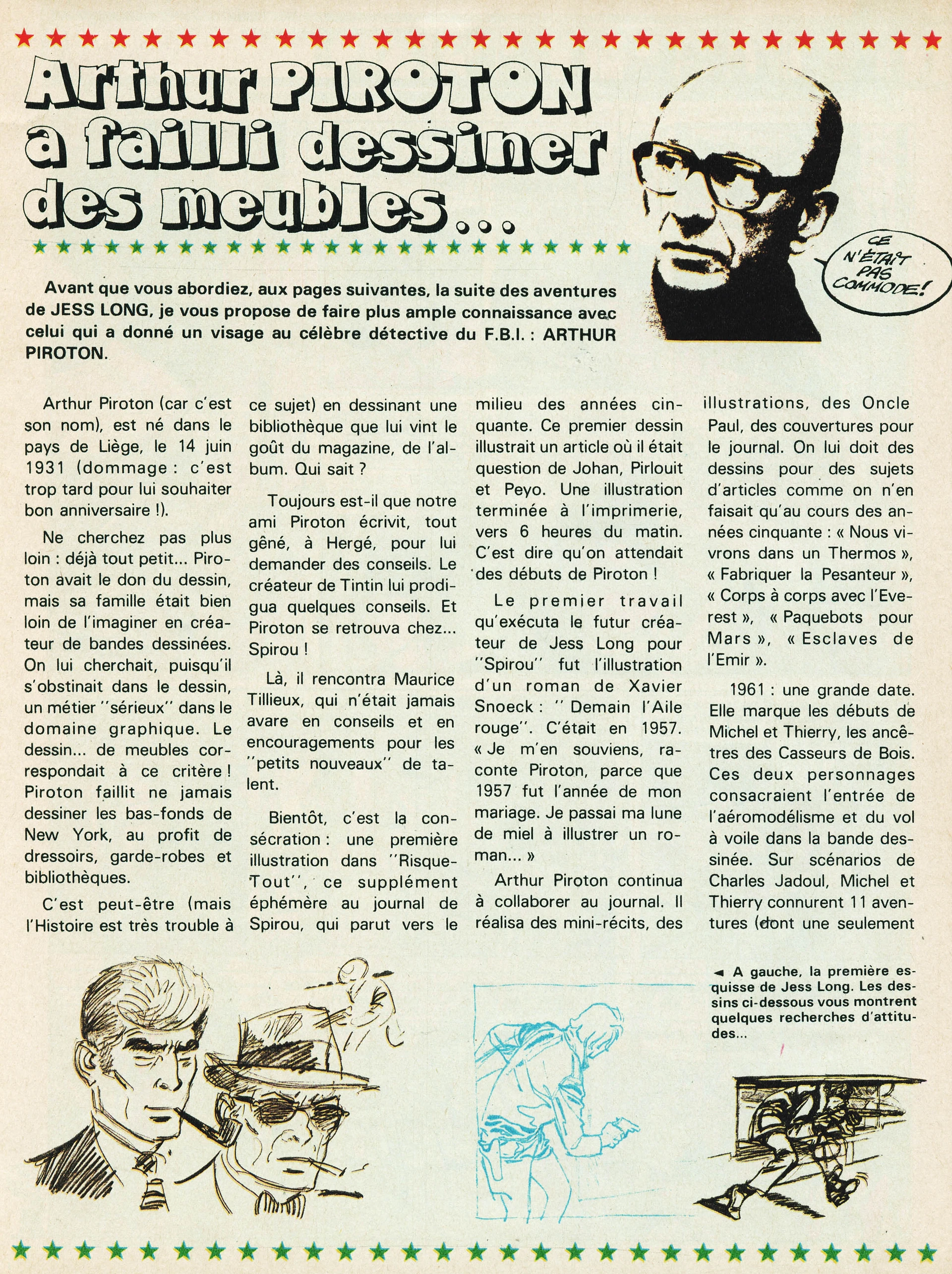Article sur Arthur Piroton dans le Spirou 2150 de 1979 :