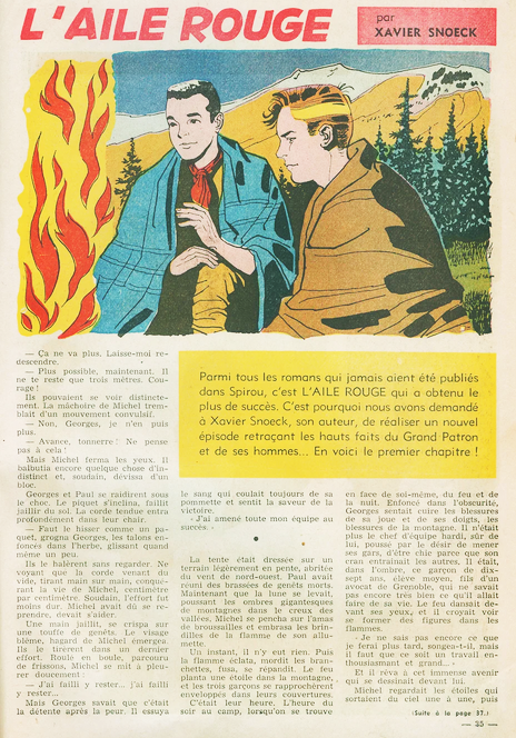 C'est dans le numéro 1000 du journal Spirou que débuta le roman " Demain, l'aile rouge", illustré par Arthur Piroton.