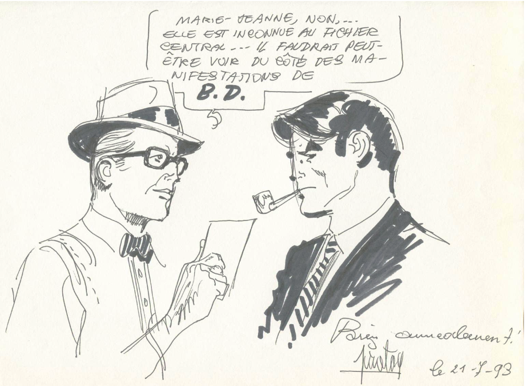 Pas trop d'idée pour l'instant. Je trouve une certaine ressemblance dans le visage du personnage de la première vignette avec Gérard Philippe . Mais le deuxième dessin ne me fait pas penser à Hugo Pratt.