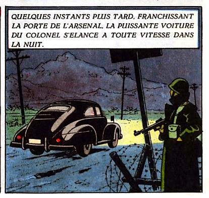 BREF, toujours est-il que... : il s'agit d'une vitre arrière de la Custom bleue conduite par Sharkey avec Olrik à ses côtés... in SOS Météores, planche 5, case 7 !