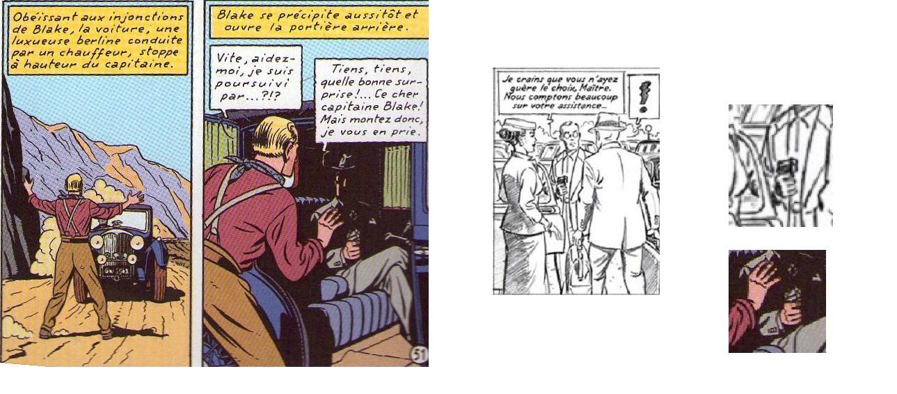 Blake arrête un auto qui se trouve être celle de Doyle-Smith..... Celui ci l’accueille avec un pistolet ( qu'il a toujours dans sa voiture , nous confie-t-il la page suivante )