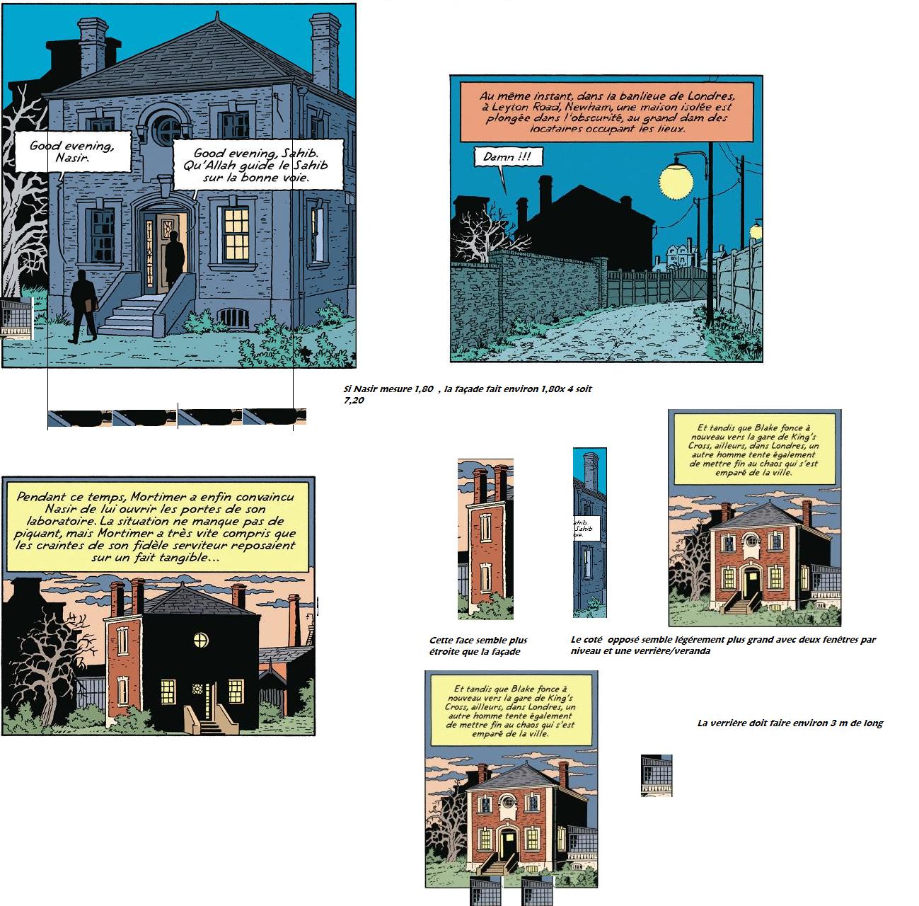 Nous sommes bien dans un univers parallèle où Olrik est complètement azimuté, les sous-sols enterrés mais à moitié enterrés pour qu'on y voie plus clair, plus grands que ne l'autorise l'implantation de la maison, même en tenant compte de la surface annexe du local avec verrière, et bien d'autres choees tout aussi farfelues... sur lesquelles je vais bientôt revenir