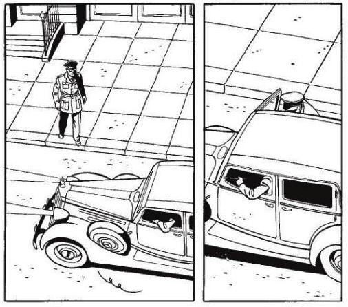 Les auteurs jouent avec le lecteur, avec une voiture au volant à gauche... tout le monde va croire que c'est lui le méchant.