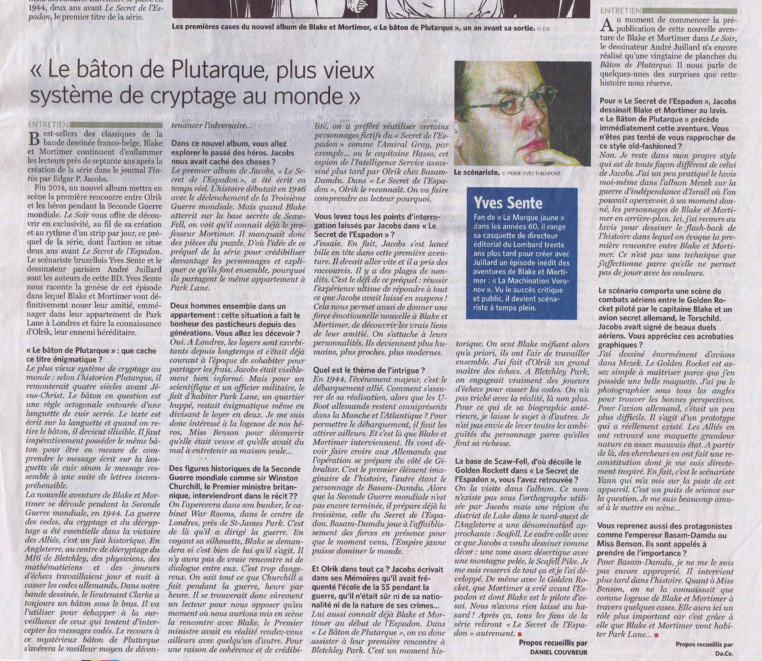 La première moitié de l'interview m'a beaucoup inquiété car sur le coup, elle donne l'impression que la seule motivation d'Yves Sente dans cet album est d'éclairer les zones d'ombre du Secret de l'Espadon... Or ce que j'attends de lui (et je ne pense pas être minoritaire), c'est avant tout un album qui me fasse vibrer ! Je suis prêt à excuser tous les écarts de rigueur du monde à partir du moment où le fond du scénario est crédible et captivant, Sente devrait (si ce n'est pas le cas) penser avant tout à cela au moment d'imaginer un scénario. D'autant qu'il ne s'est pas toujours montré à la hauteur de ses propres exigences pour la mise en cohérence chronologique, loin s'en faut, donc tout miser sur ce tableau est pour le moins périlleux.