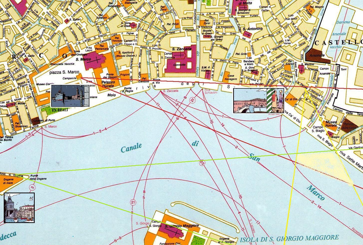 Une petite triangulation , nous permet de constate que le palais doit se trouver quelque part dans le Quartier du Castello, le plus à l'ouest" des six sestieri de Venise.