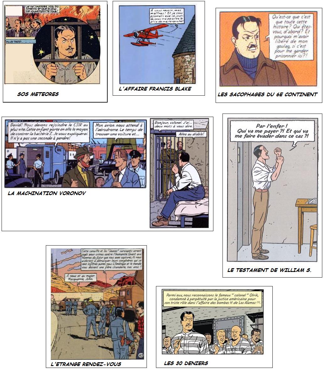 Je me suis fait simplement la remarque que ce génie du crime se retrouve très souvent en prison depuis les reprises. Dans le corpus jacobsien , on ne voit qu’une fois Olrik emprisonné . Une vignette , presque allégorique, dans SOS Météores qui montre Olrik derrière des barreaux, probablement dans une prison française, mais cela n'est pas précisé. C'est une des rares fois dans les albums de Edgar p. Jacobs, où il ne finit pas laissé pour mort, dans des circonstances spectaculaires , attaché sur une fusée , pris dans une explosion ou une inondation apocalyptiques etc etc....