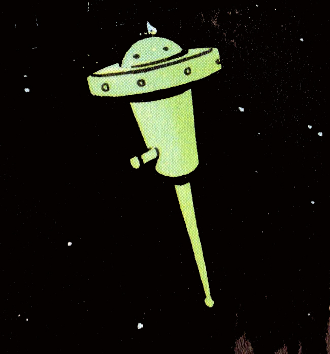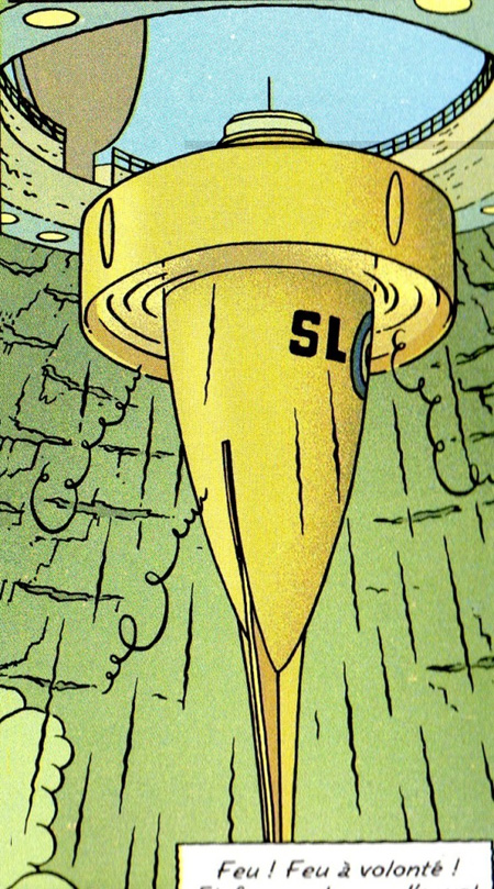 Pour ceux qui laisaient les bandes dessinées publiées dans Tintin, dans les Années anciennes, et qui auraient lu et/ou acheté les Dans Cooper, qu'ils aillent feuilleter vers la fin de l'histoire, et ils verront quasiment le même engin dans l'espace du Maître du Soleil !