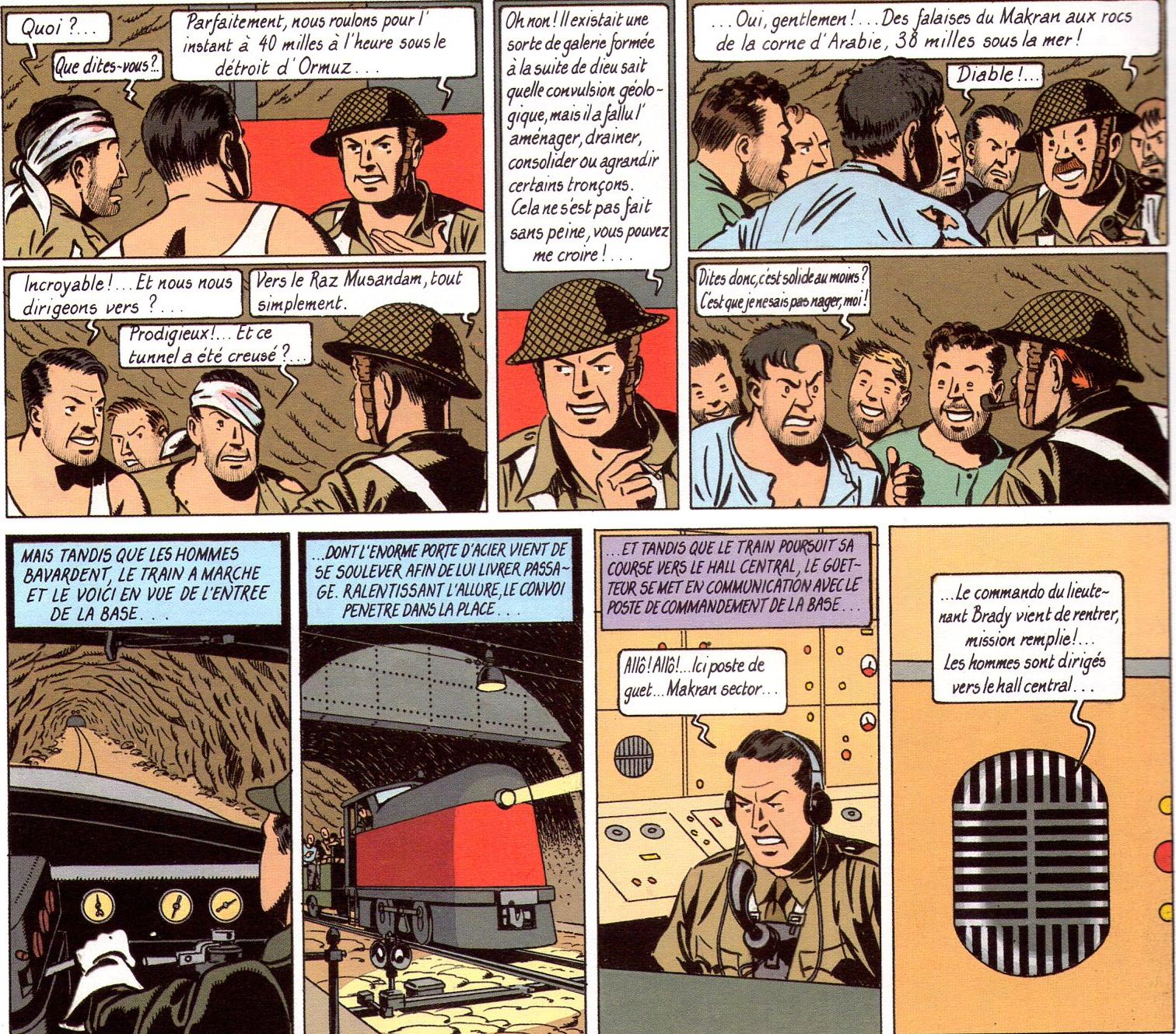 Encore une fois, les gens qui survolent les albums de Jacobs, et qui se permettent d'en tirer des conclusions tant soit peu hâtives, ont habilement (???) mélangé le poste de contrôle "Makran Sector" qui, lui, est bien situé de l'autre côté, en Iran, à l'entrée du tunnel de 38 miles de long qui relie l'Iran à la base, avec la base elle-même, qui, chacun sait (???) se trouve isolée en mer en Arabie !