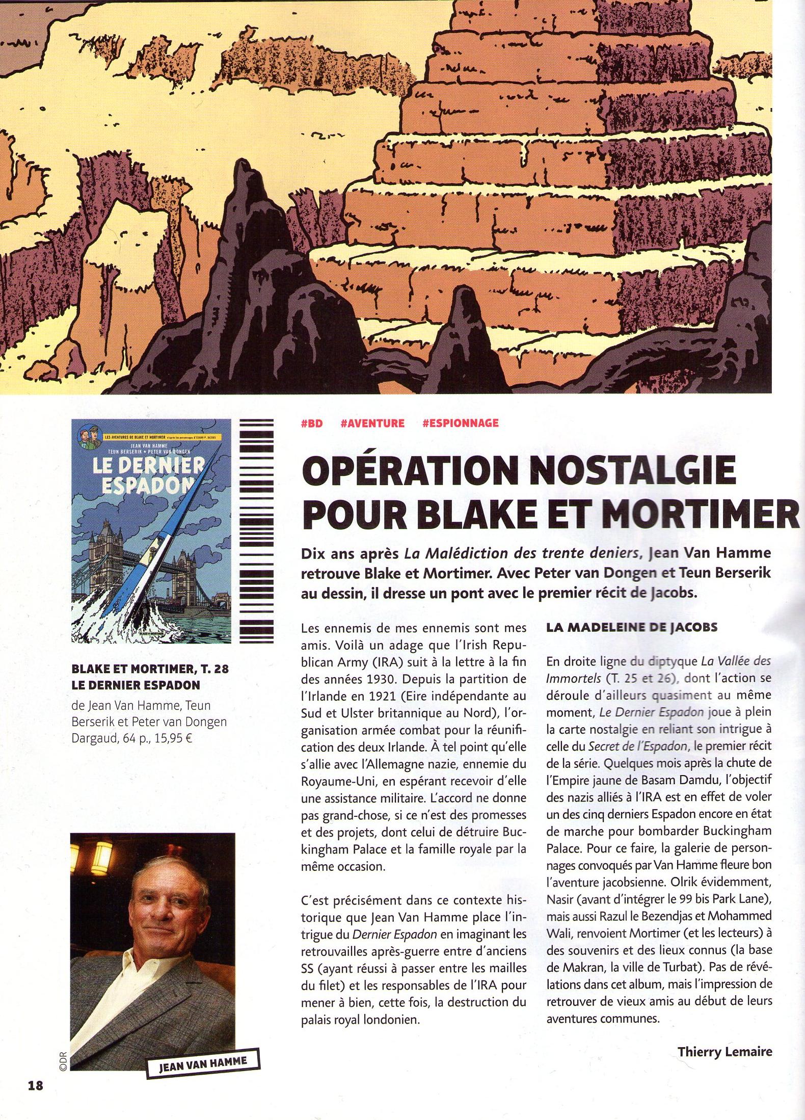 Il insiste seulement sur le fait que l'album "joue à fond la carte nostalgie" et que "la galerie de personnages convoqués par Van Hamme fleure bon l'aventure jacobsienne". .../...