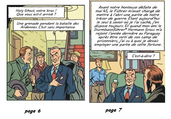 L’erreur page 16/18 du dernier espadon a déjà été soulignée? Blake explique page 18 au jeune irlandais qu’il doit couper la corde au dessus de sa tête alors qu’il pourrait le faire peinard vu que page 16 on voit que la corde n’est pas accrochée au plafond mais juste passée dans un anneau qui va chercher à mi hauteur du mur.