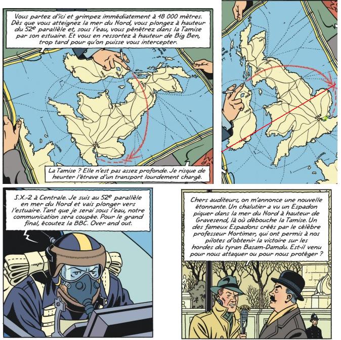 C'est clair que ce n'est pas le site du Baton de Plutarque et que la base a été reconstruite ailleurs. Par ailleurs ce nouveau paysage correspond beaucoup plus à celui du Secret de l'Espadon t. 1, en particulier quand on voit les camions d'évacuation s'éloigner dans une plaine (reprise pour l'album) et encore plus quand on voit la file de camions serpenter entre des reliefs (version "Journal Tintin").