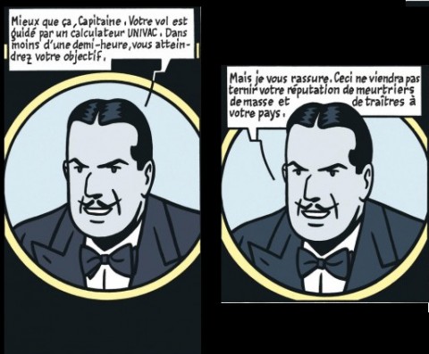 Si j’ai bien compris, le docteur Rosalind Shapiro veut se venger du régime communiste, responsable de l’exécution de son père, et Olrik veut démontrer « qu’un homme seul peut défier les nations, les pousser à la haine et à la destruction » ! Vaste programme surtout que si son plan réussit, personne n’en saura rien puisque tout sera mis sur le compte de B&M. A mon humble avis, je pense surtout qu’il veut prendre sa revanche sur eux. Drôles de raisons pour déclencher une nouvelle guerre mondiale!