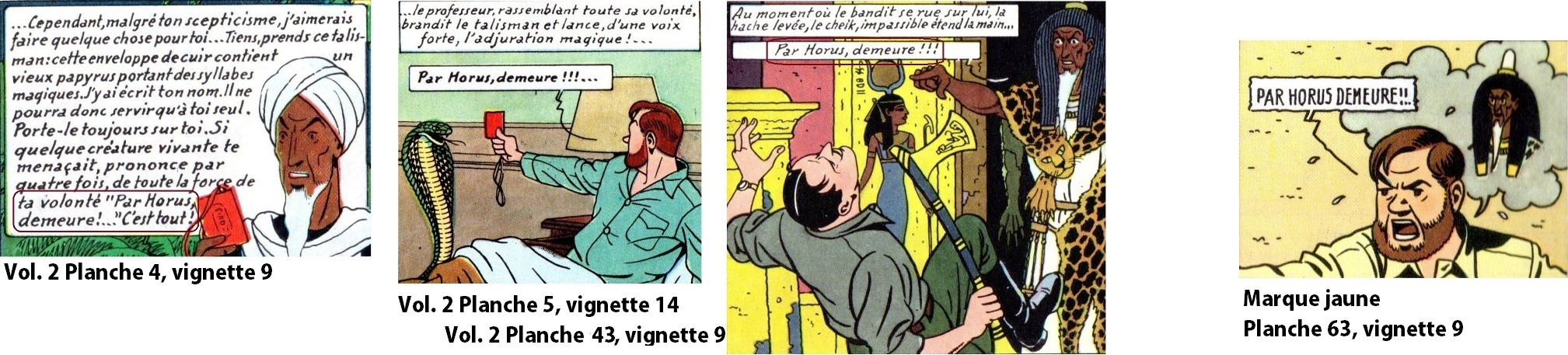 L’on essaie de nous faire accroire que tout un chacun en ce bas monde serait au fait de la phrase magique que Cheikh Abdel Razek confiait à Mortimer en petit comité dans les jardins du Mena House, en cette délicieuse soirée de mai 1951 (Cf. Vol. 2, planche 4, case 9) : « Par Horus demeure ! ».