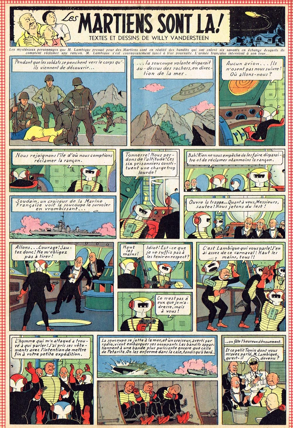 Voici une image de la couverture de ce Bob et Bobette avec d'ailleurs au premier plan en bas à gauche une sorte d'appareil de transmission futuriste.Kronos a écrit : ↑16 janv. 2026, 09:28Je viens de m'apercevoir que, soit Van Dongen, soit Sente, soit les deux, ont aussi puiser leur inspiration dans Bob et Bobette ; les Martiens sont là ! de Vandersteen dans les engins spatiaux dessinés ; mais, n'ayant plus les albums chez moi, je suis bien dans l'impossibilité de montrer les exemples de ce que j'avance