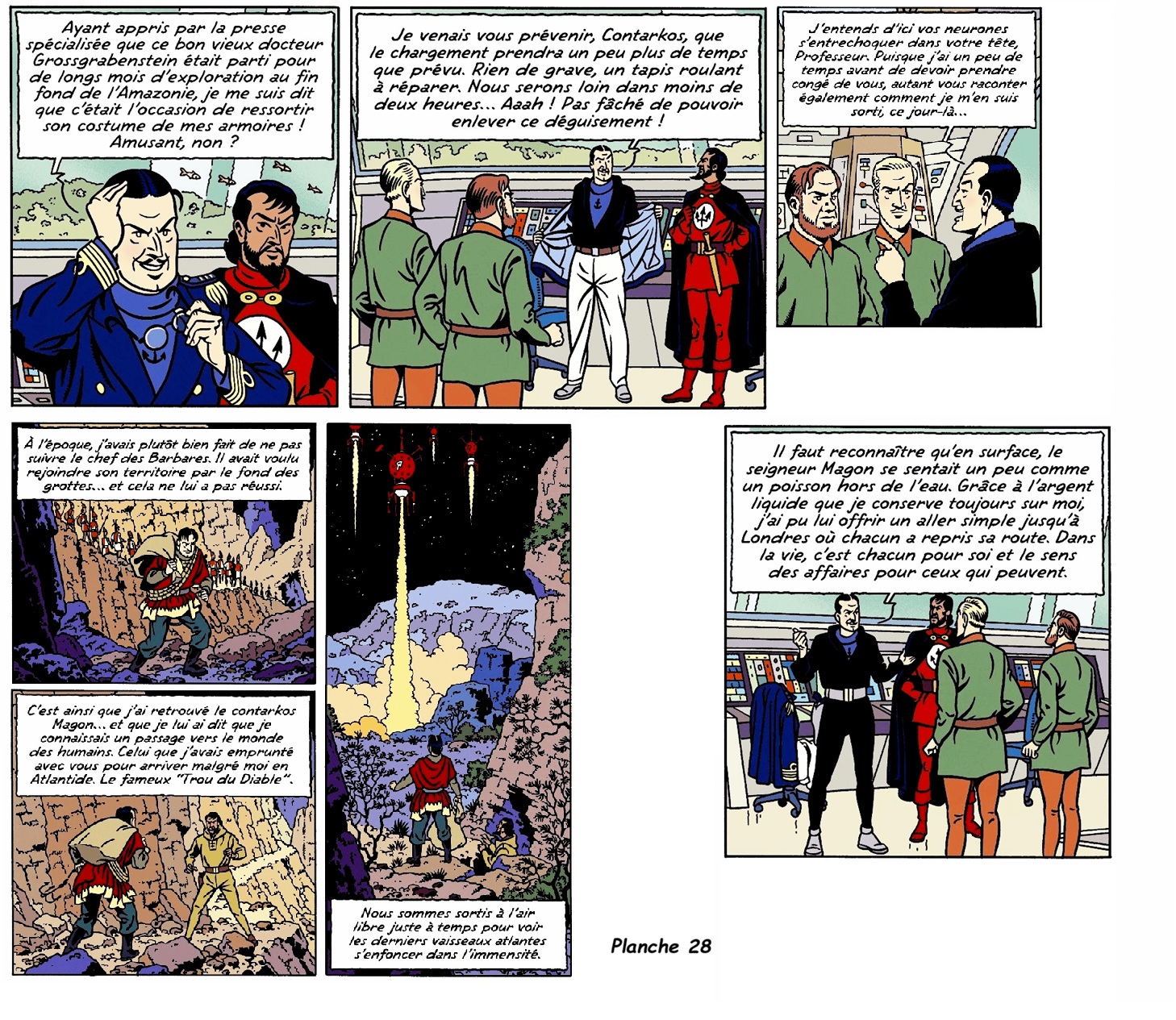 Dés la deuxième planche de la Menace Atlante, nous nous retrouvons dans le fumoir .Lors de la Marque Jaune, le fumoir n’était pas aussi fréquenté. Au point que le capitaine Blake pouvait demandé à James de s’arranger de faire en sorte que personne ne les dérange pendant dix minutes pour qu’il puisse discuter tranquillement avec Mortimer.