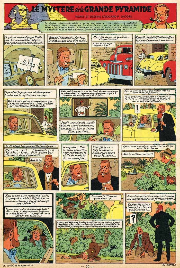 Nicfit a écrit :J'ai moi aussi toujours estimé que les couleurs des éditions B&M étaient criardes, mais enfin c'était la spécialité de Jacobs ! C'est finalement grâce à cette compétence qu'il a été repéré par Hergé et pût entamer la carrière que l'on connaît... Donc j'ai toujours été sceptique vis-à-vis de la thèse de la 'manipulation', et suis intéressé par tes sources ! Sans vouloir polémiquer non plus...Thark a écrit :On sait tous que dans ses toutes dernières années, Jacobs, beaucoup moins motivé, a été énormément influencé (pour ne pas dire manipulé... ).