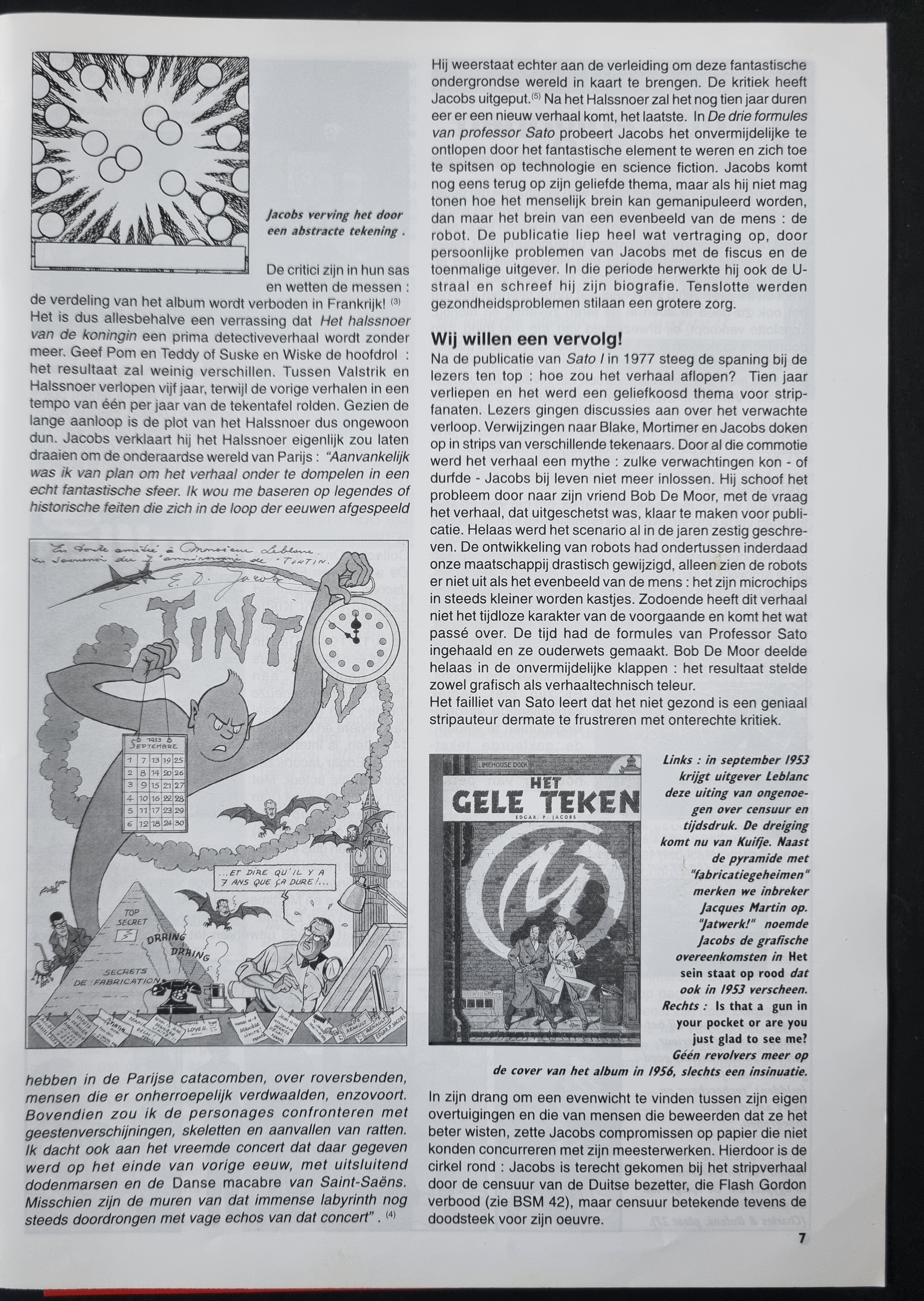 Dans sa quête d'un équilibre entre ses propres convictions et celles de ceux qui prétendaient mieux savoir, Jacobs a fait des compromis sur le papier qui ne pouvaient rivaliser avec ses chefs-d'œuvre. La boucle est bouclée : Jacobs a fait son entrée dans le monde de la bande dessinée grâce à la censure des occupants allemands, qui ont interdit Flash Gordon (voir BSM 42), mais cette même censure a également porté un coup fatal à son œuvre.
