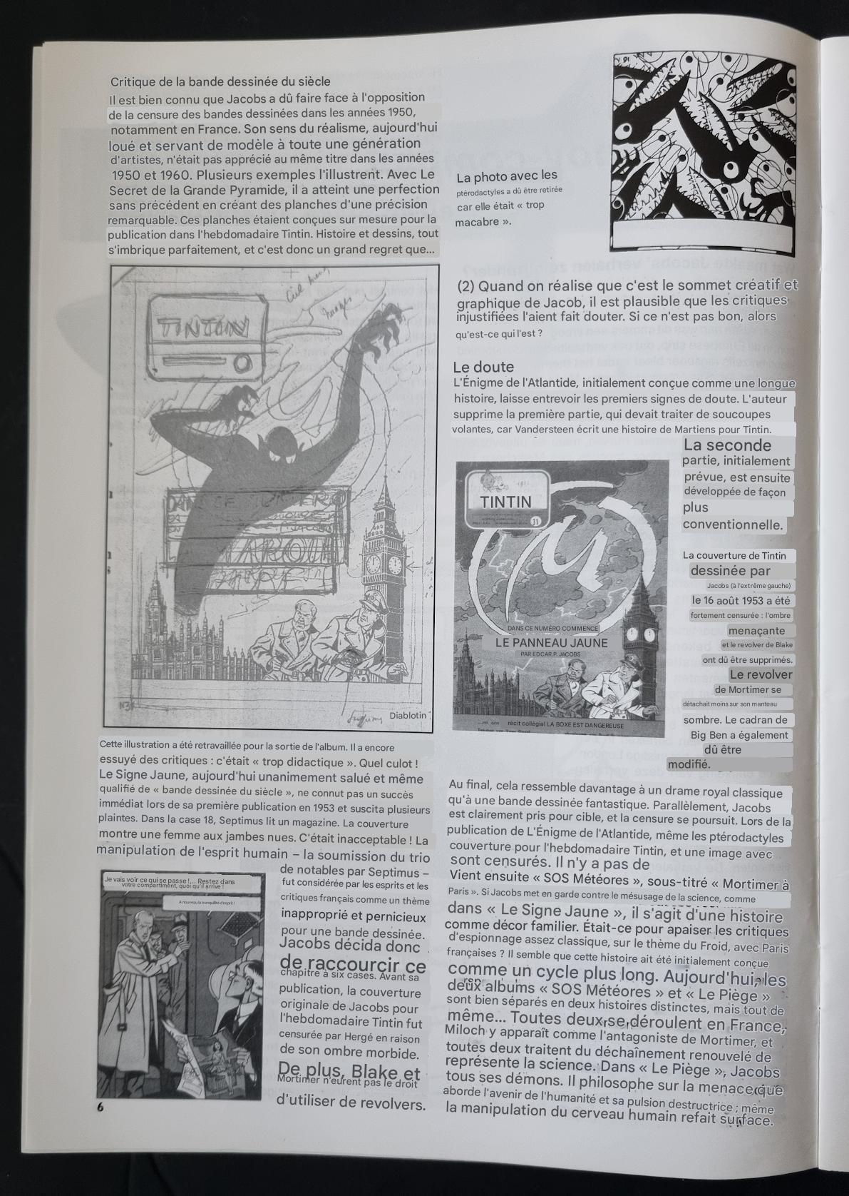 Au final, cela ressemble davantage à un drame royal classique qu'à une bande dessinée fantastique. Parallèlement, Jacobs est clairement pris pour cible, et la censure se poursuit. Lors de la publication de L'Énigme de l'Atlantide, même les ptérodactyles sont censurés. Il n'y a pas de couverture pour l'hebdomadaire Tintin, et une image avec