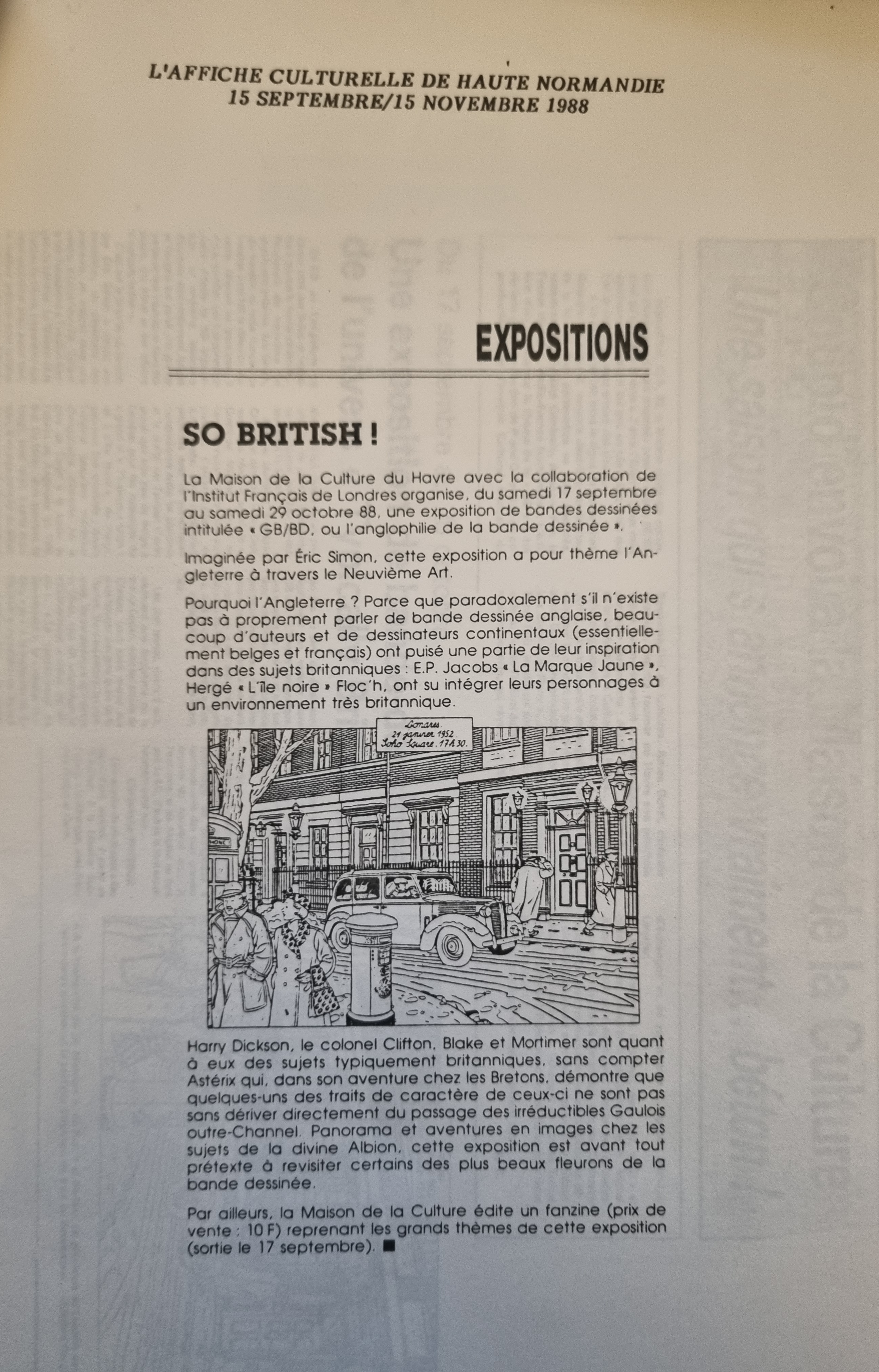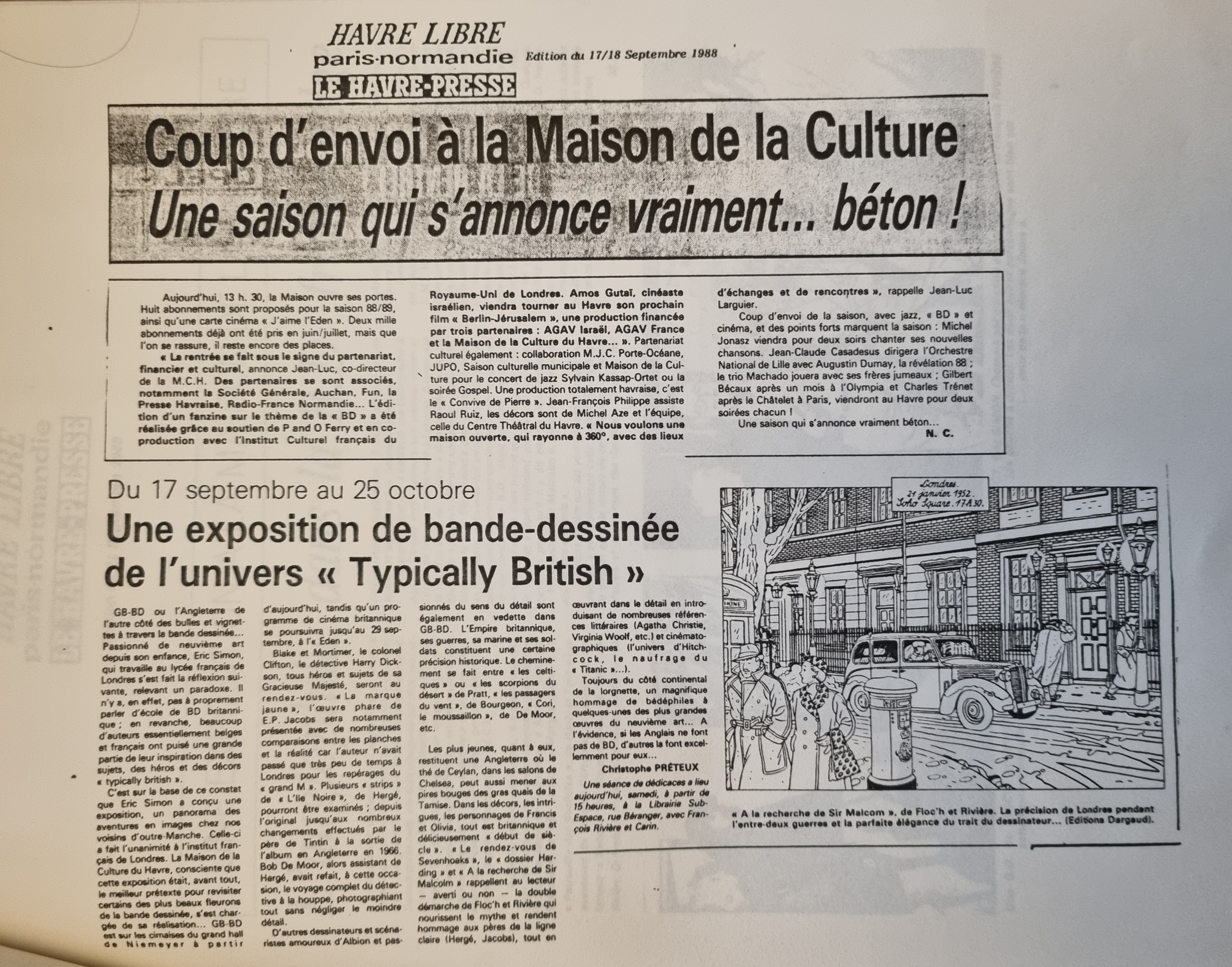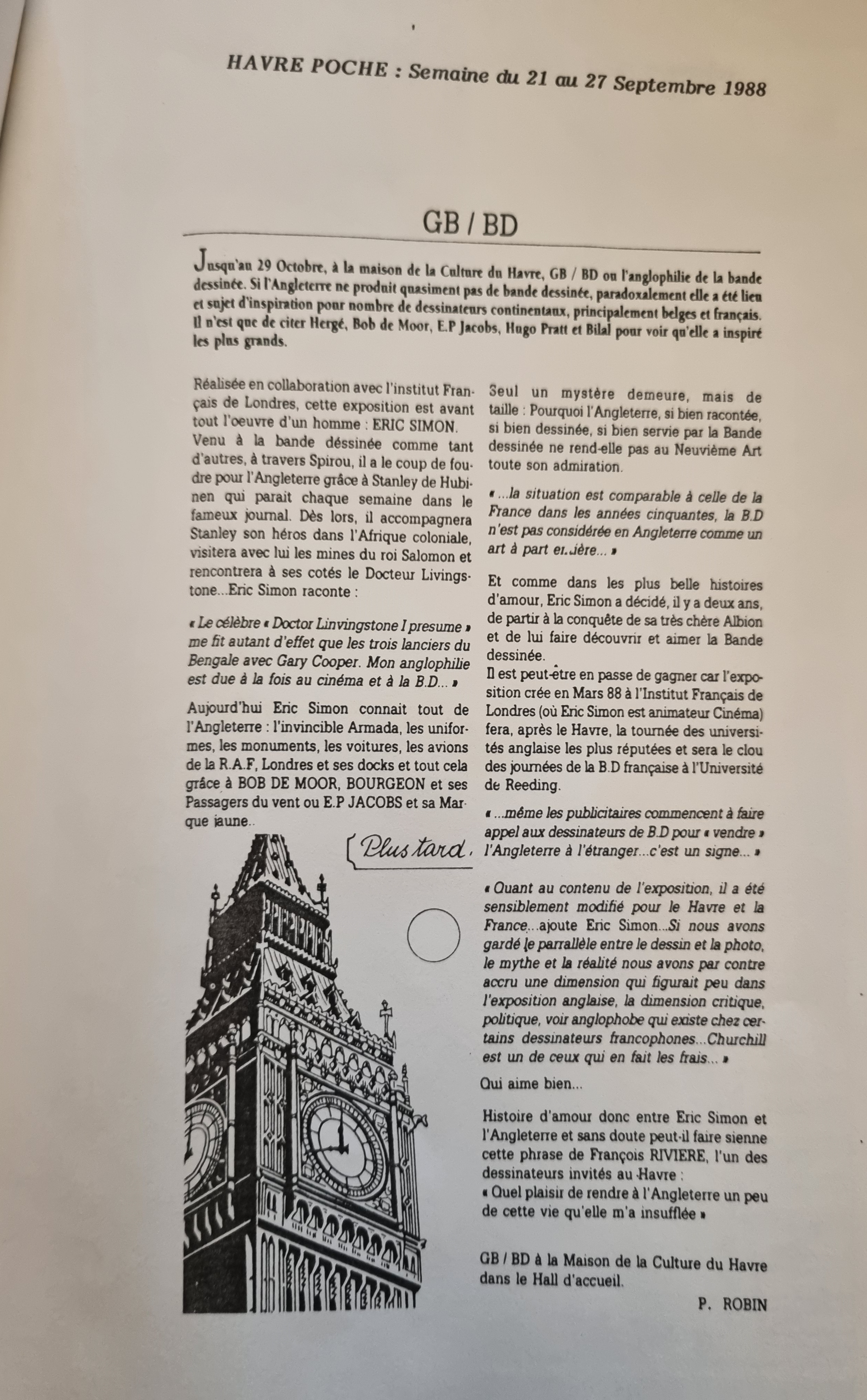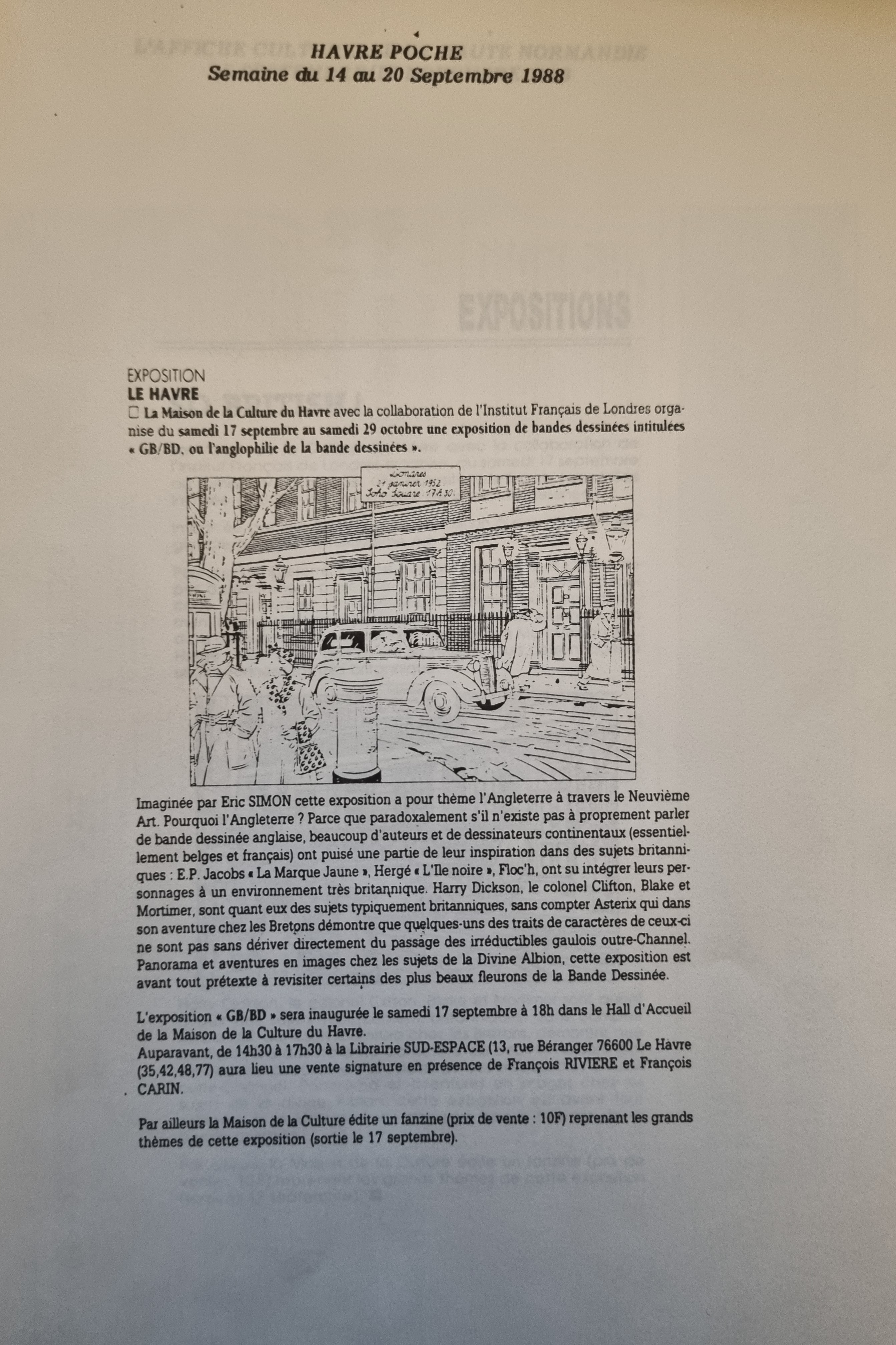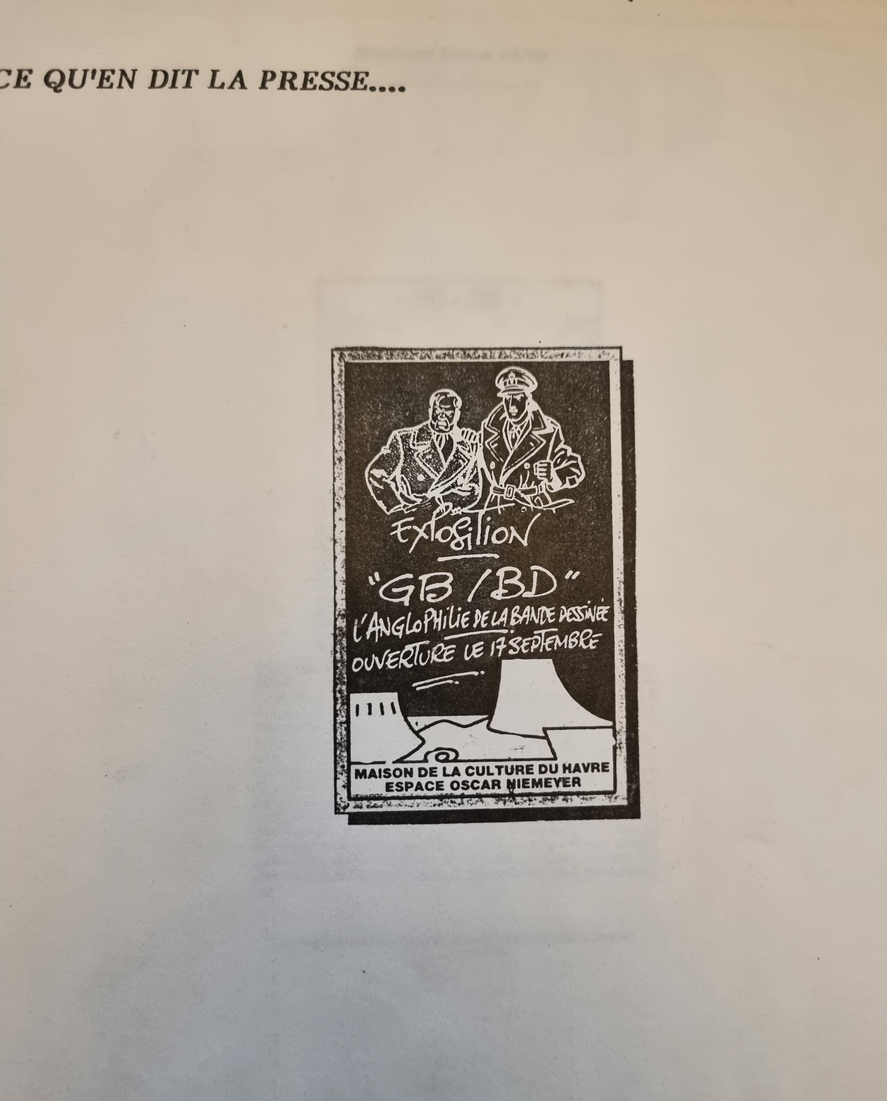 - Cette brochure a été éditée à l’occasion de l'exposition "GB/BD, les anglophiles dans la bande dessinée" présentée à la maison de la Culture du Havre du 17 Septembre au 30 Octobre 1988