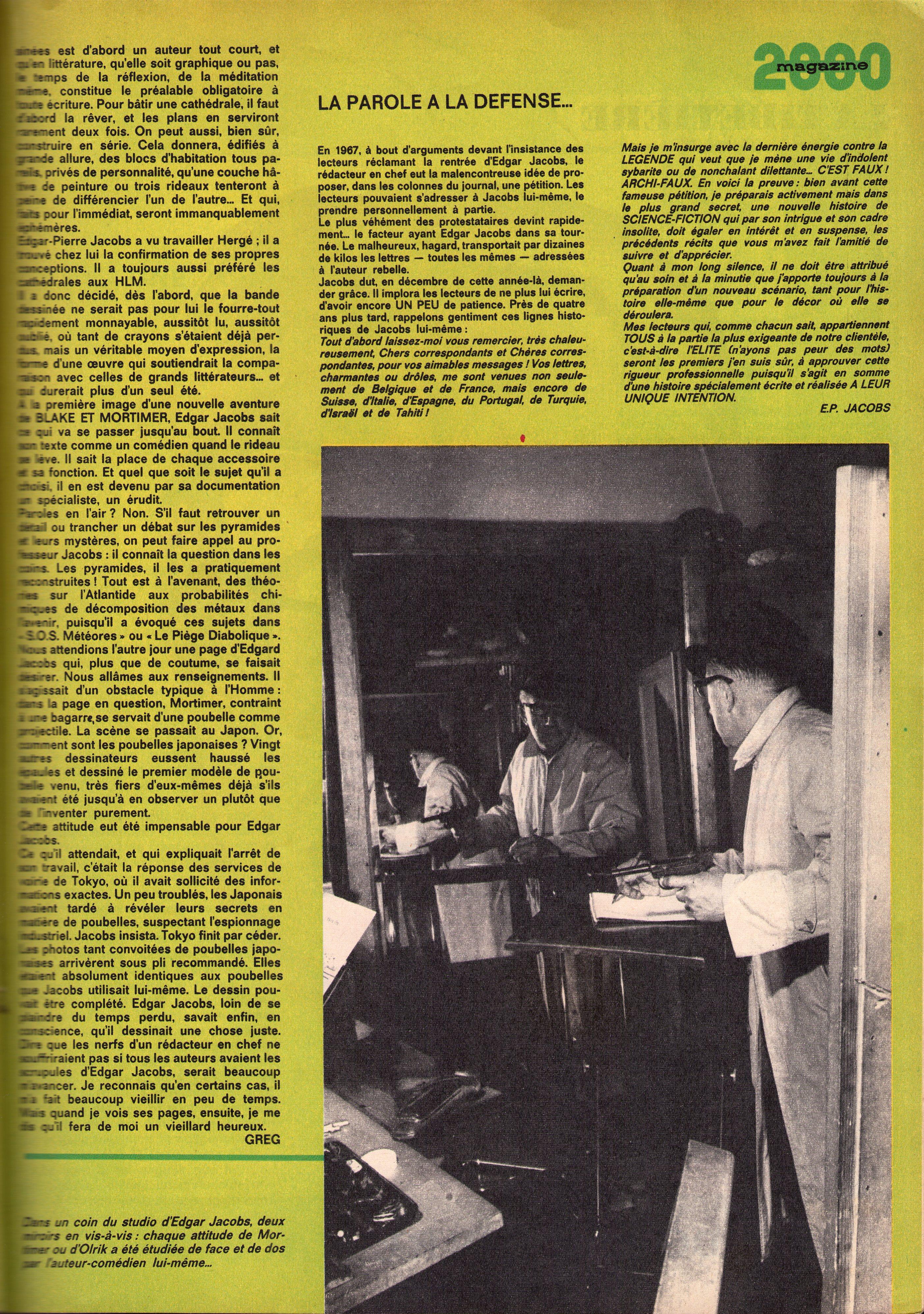 Je suis sur le dossier Jacobs paru dans Tintin du N°1198 du 14 novembre 1971!
