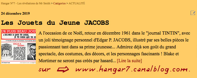 Cette scène de Jacobs animant des pièces de théâtre avec ses jouets lorsqu'il était enfant est reprise notamment par Carin et Riviére dans le Théatre du mystère dans un numéro spécial EPJ du journal Tintin .