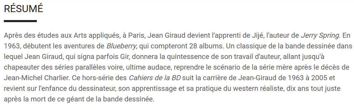 Un hors-série des Cahiers de la BD, consacré à Jean GIRAUD devrait paraître le 09 février.