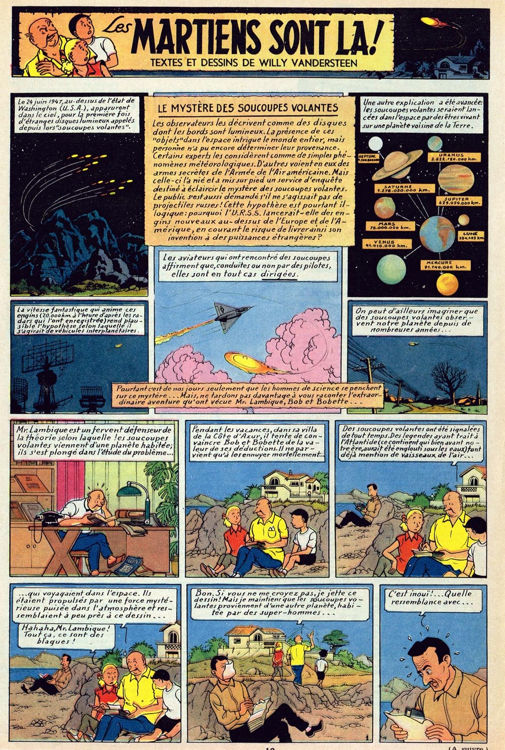 Les découpages et les textes étaient établis et je m'apprêtais à entamer les premières planches, lorsqu'à ma grande stupeur, j'appris que Willy Vandersteen sortait, en avance sur moi de six semaines, une histoire intitulée : Les martiens sont là, histoire qui, je l'ai su trop tard, n'était qu'une mystification humoristique n'ayant rien à voir avec le phénomène en question.