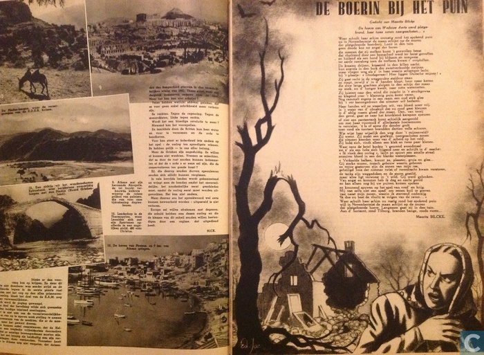 De Boerin bij het puin , 31/12/1944 , n°12 . Source : Catawiki , signé "Edg. Jacobs" .