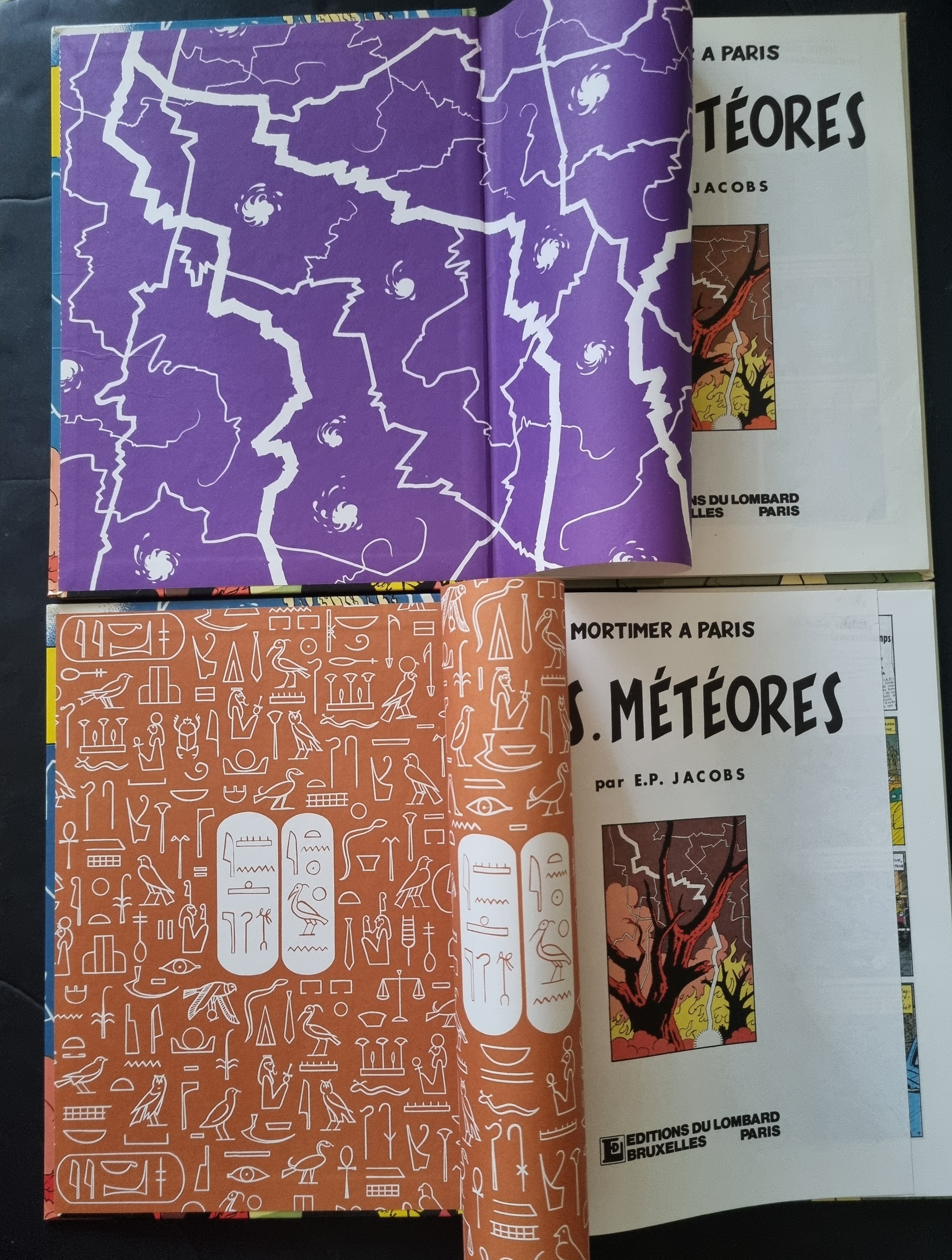 A noter une variante de SOS Météores 5 titres avec pages de garde soit avec l'éclair soit avec hiéroglyphes