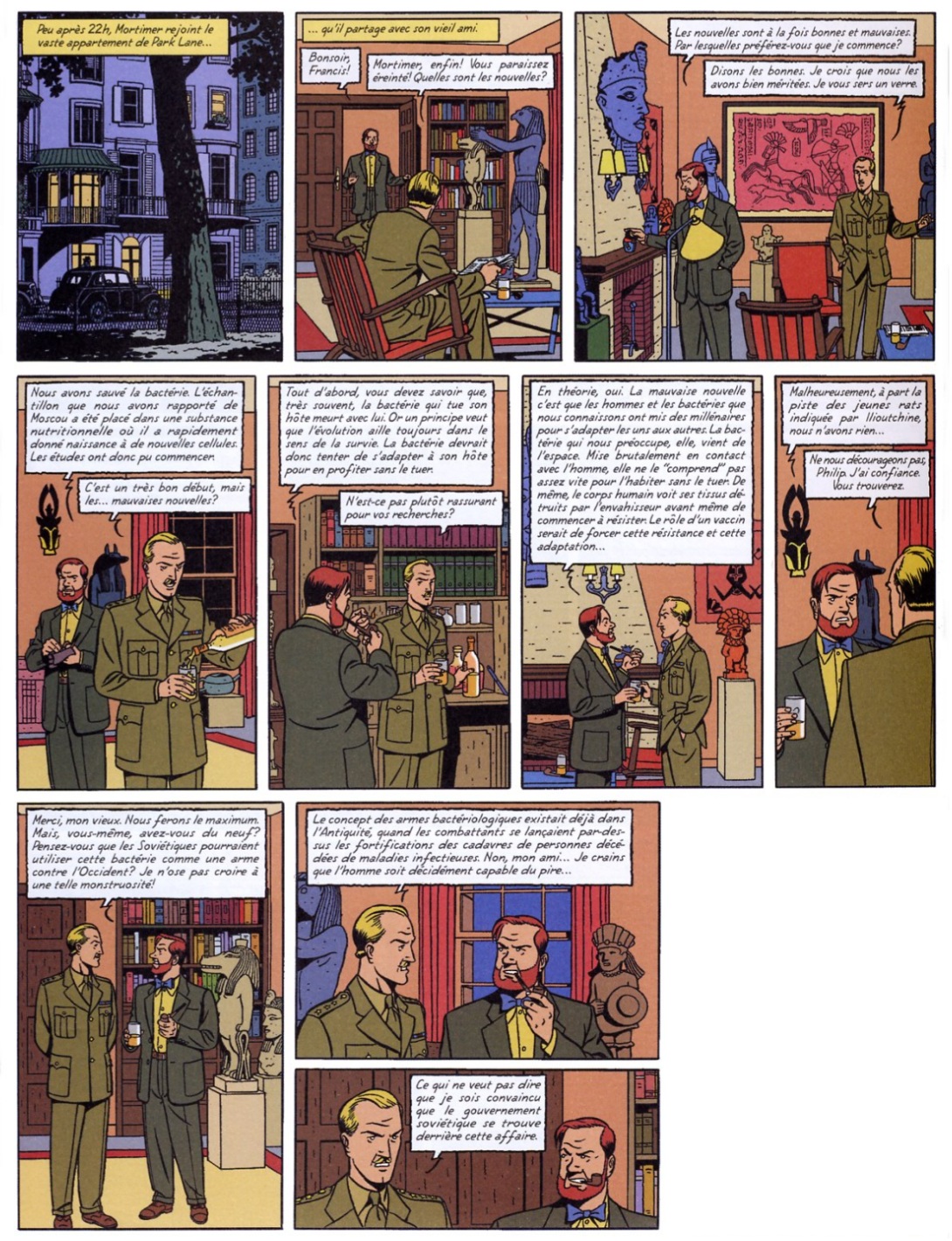L'Affaire Francis Blake : Mortimer est reconduit par la police au 99 bis , où il va apprendre la "trahison" de son ami Francis. :roll: