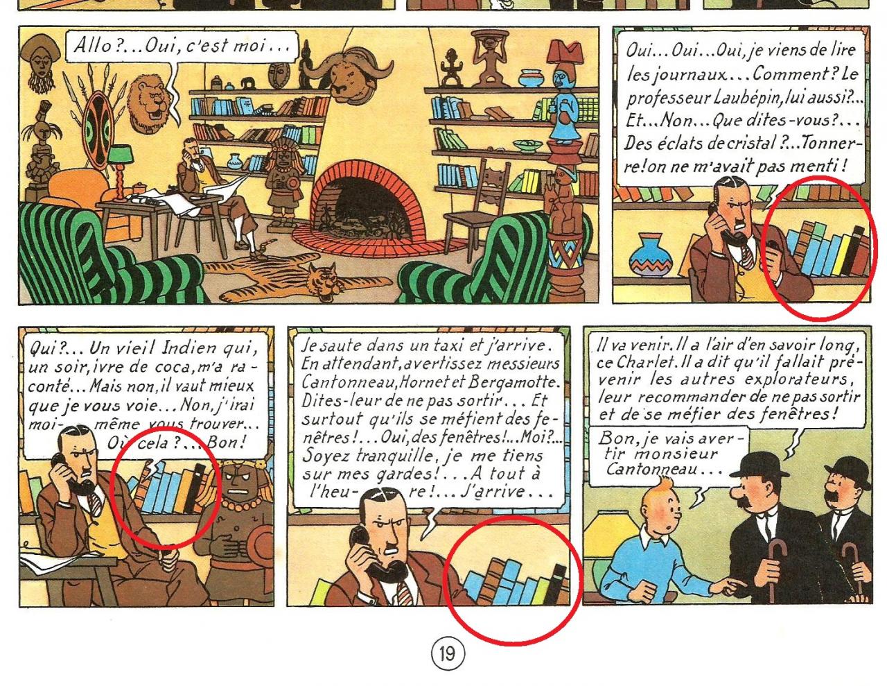 Les cercles auraient dû se figer sur la statuette dans la case du bas à gauche, lorsque Marc Charlet téléphone au Dupondt. Je suis désolé de n'avoir pas pu modifier cette image... :o