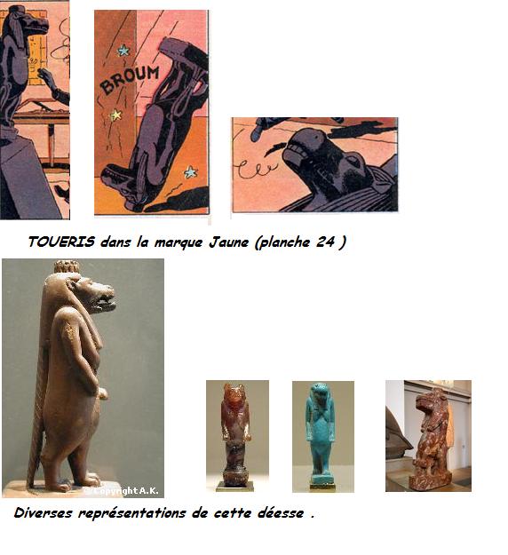 Touéris aidait les morts à renaître dans le Noun. Elle pouvait prendre la forme d'une bête redoutable, hybride d'hippopotame, de lion et de crocodile. Seth pouvant également prendre la forme d'un hippopotame, Touéris était souvent considérée comme sa compagne.