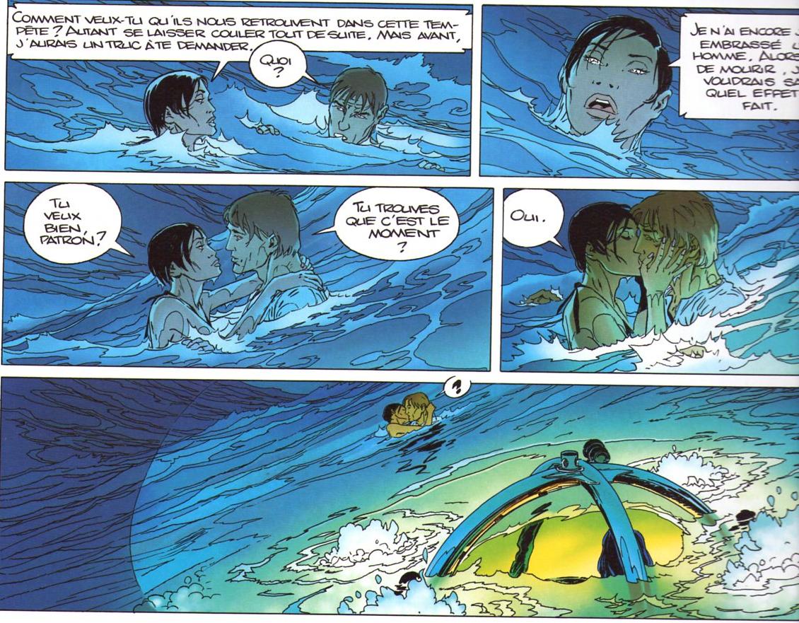 Sans compter que le dialogue est indissociable de l'image : Coté invraisemblance, le coup du sous marin de poche qui retrouve Largo et Silk en plein milieu de la Mer rouge
