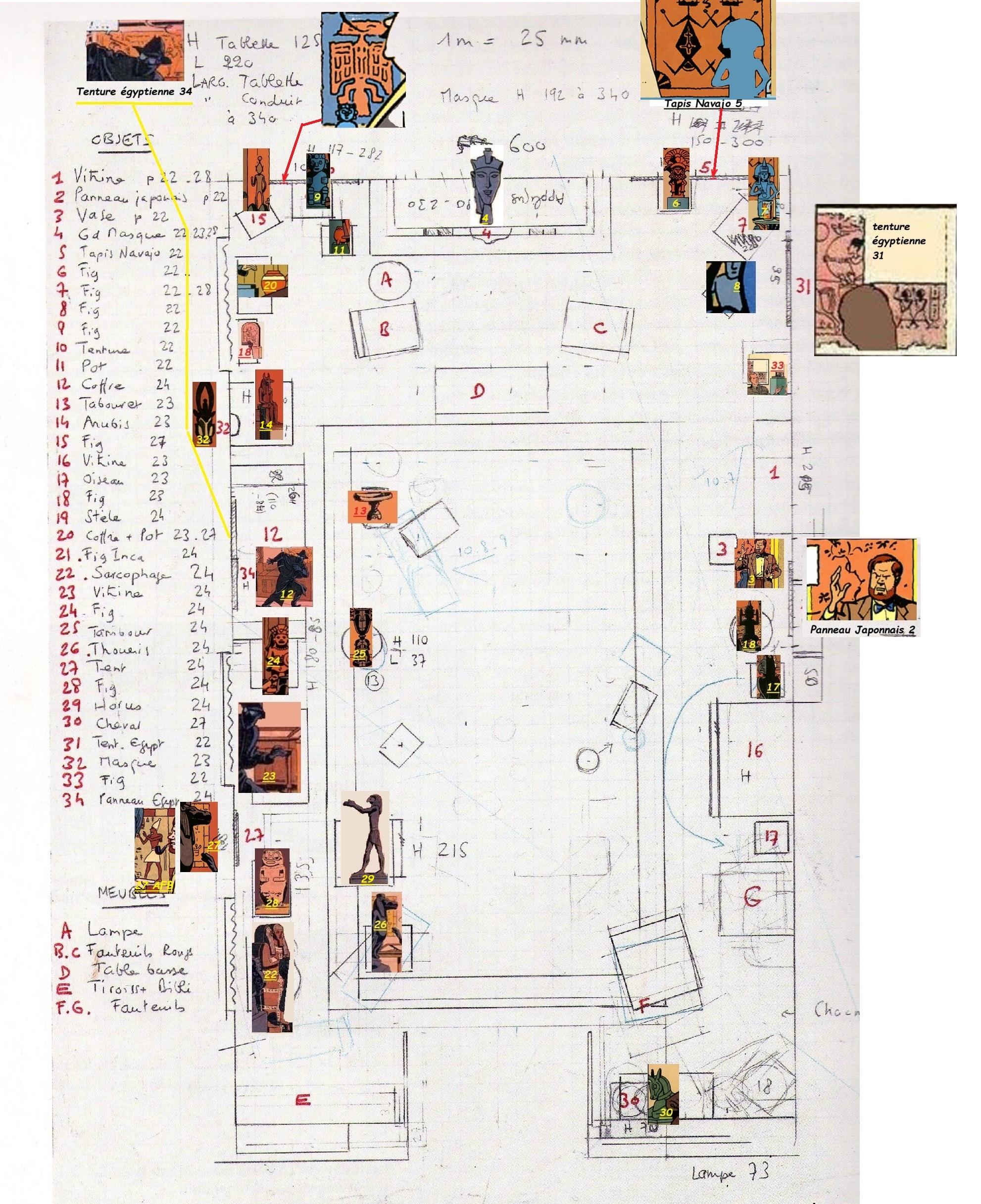 A noter : les objets non numérotés dans le plan de Ted Benoit font l'objet d'une sous numérotation .