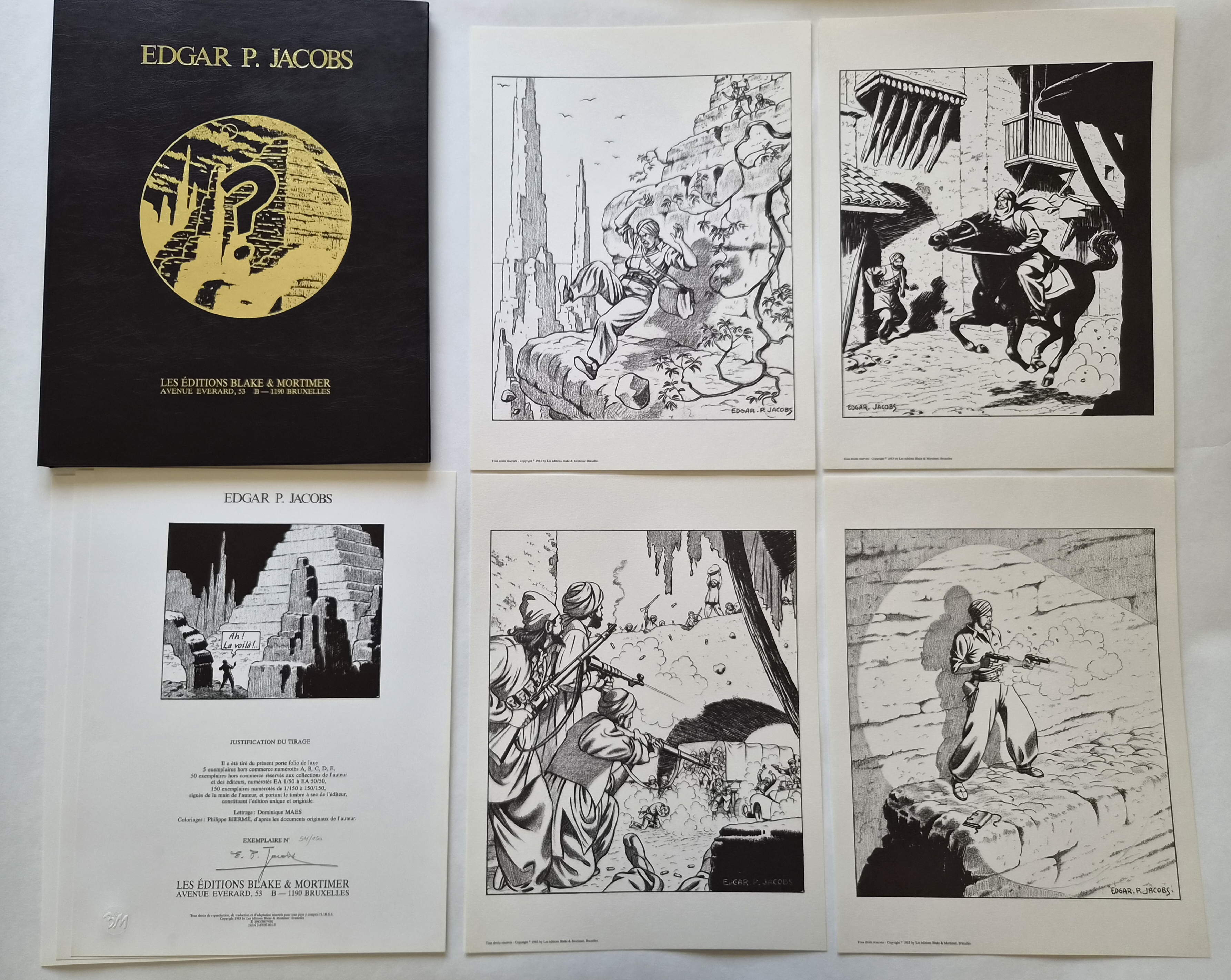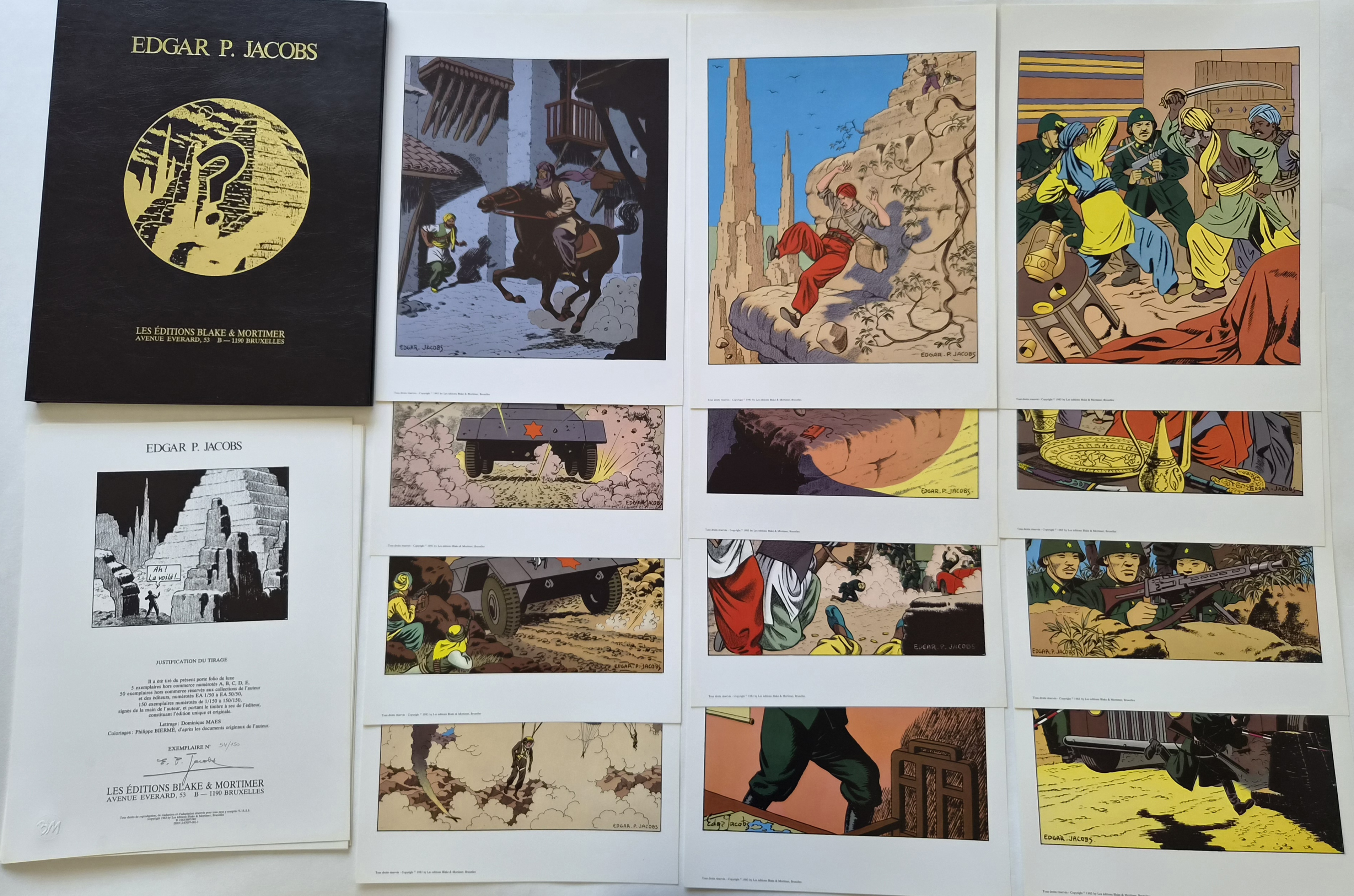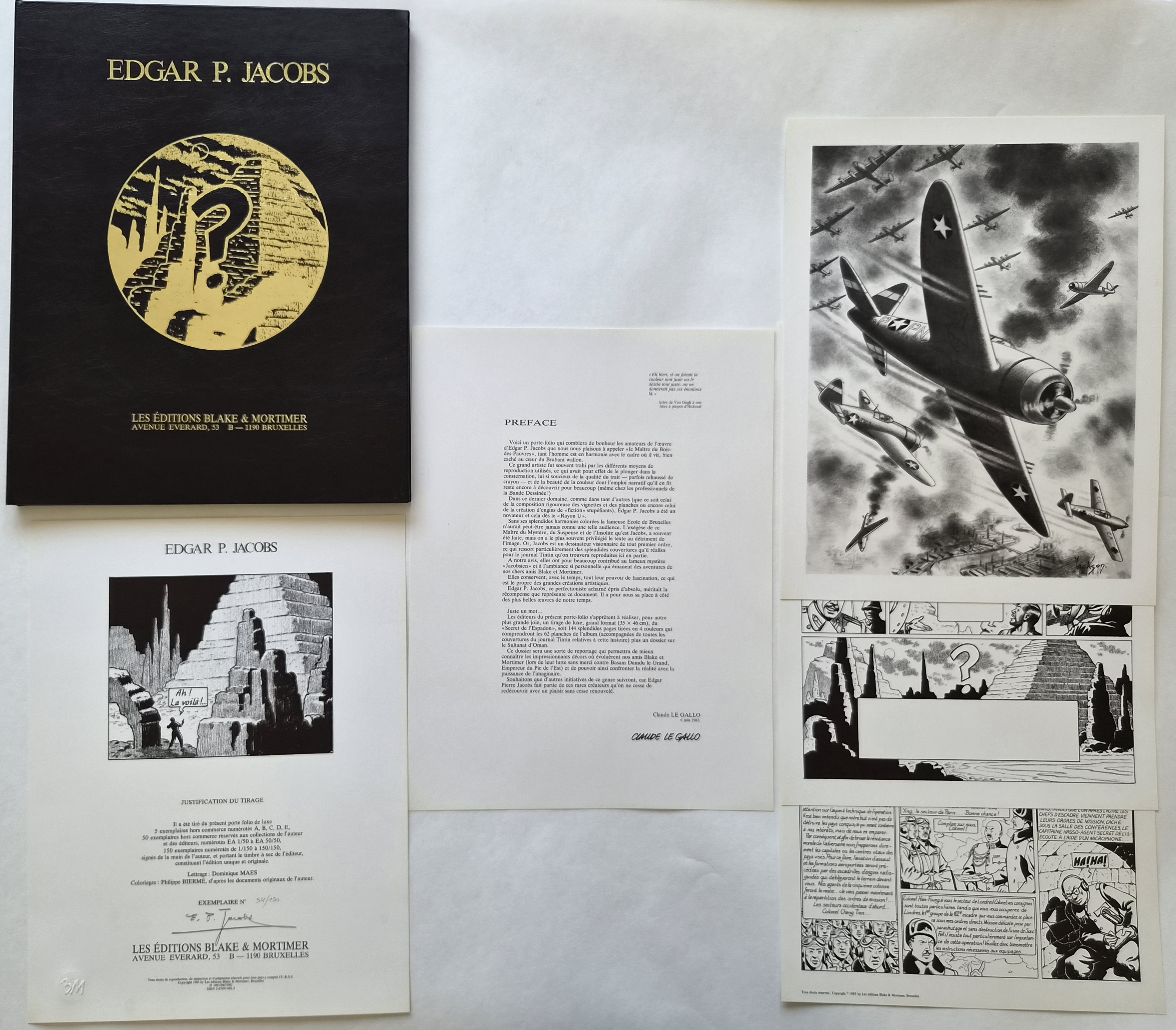 * le portfolio en cuir de 1983 avec ses 19 planches plus 2 justificatifs sous logo "Editions Blake et Mortimer", celui là fut signé par Jacobs (150 ex)