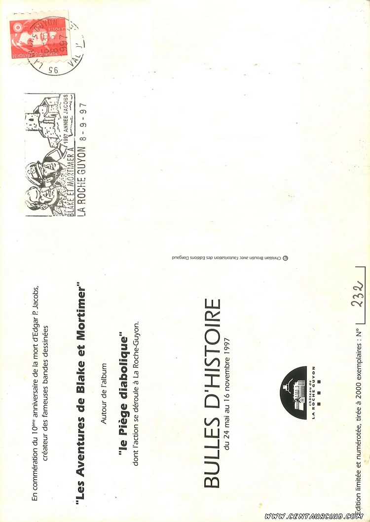 Re: carte postale - Bulles d'histoire - Exposition "Blake et Mortimer, le baryton du 9eme art" - (Ted Benoit) - 1997/05