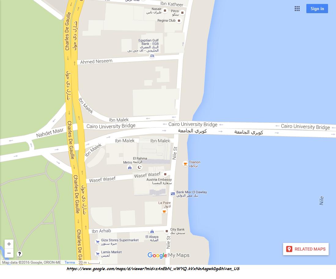 Pour info - Le University Bridge ou Kûbri (pont) el-Gâmi’a fut construit par les deux grandes Compagnies Allemandes Fred Krupp (aciers) et Julius Burger (entrepreneur), et fut officiellement inauguré le 2 juin 1958 à 10h00 du matin, en présence des ministres Ahmed Hassan Bakoury et Mohammed Abou Nosseir et de l’ambassadeur d’Allemagne Walter Becker, accompagnés de Max Buchinger de la Krupp. Le coût de la construction s’éleva à quelque 1.257.000 Livres égyptiennes.