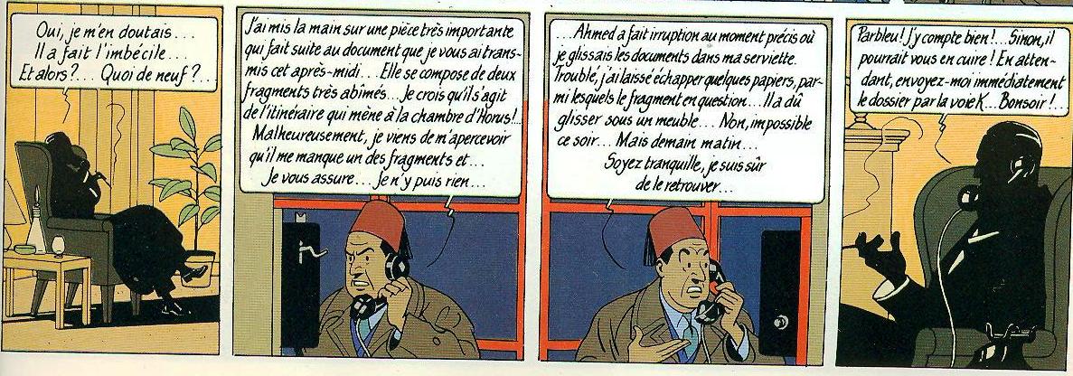 Je tends à répondre affirmatif à ta question . Mais il y a pour moi un petit problème qui n'a jamais été discuté .axelborg14 a écrit : Dans le Mystère de la Grande Pyramide, menaçant Abdul au téléphone, Olrik évoque furtivement un grand patron, que l'on ne voit cependant jamais ...