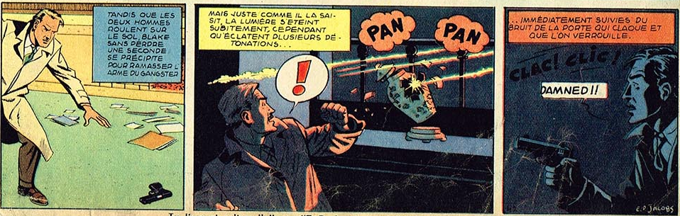 Planche 52 : "Pendant que se déroulaient ces évènements, Blake et Pradier ne sont pas restés inactifs. Toute la journée du 12 et toute la nuit suivante, ils ont enquêté..."