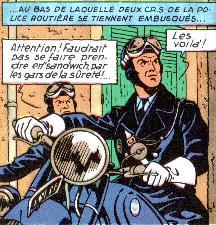 Aussi, je vous propose de nous replonger "dans les pas" de Jacobs avec ces quelques dessins et clichés de la poursuite entre le fourgon Peugeot, la Custom de Sharkey et les gendarmes de la Mobile.