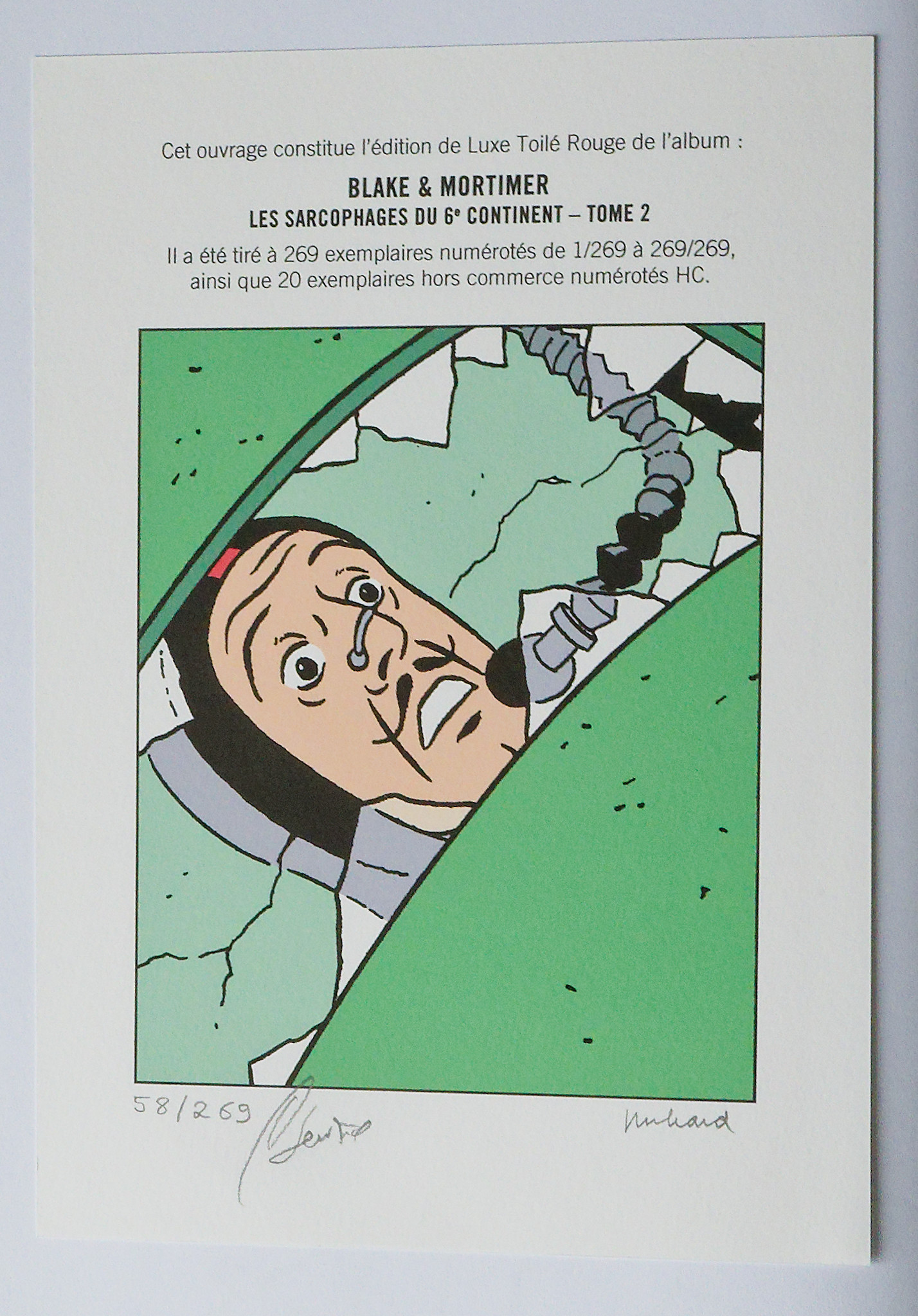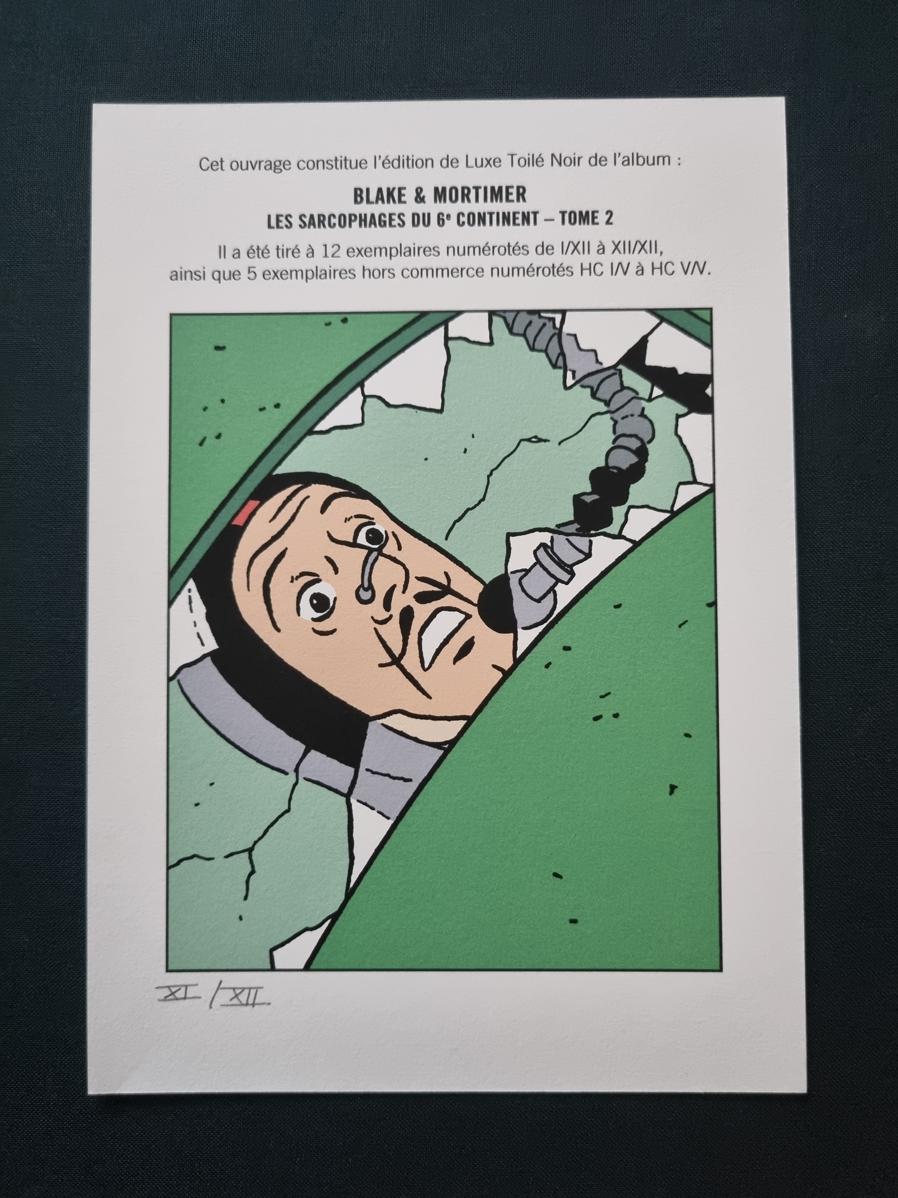 « Cet ouvrage constitue l'édition de Luxe Toilé Rouge de l'album BLAKE & MORTIMER LES SARCOPHAGES DU 6e CONTINENT - TOME 2 Il a été tiré de cet ouvrage 269 exemplaires numérotés de 1/269 à 269/269 ainsi que 20 exemplaires numérotés HC »