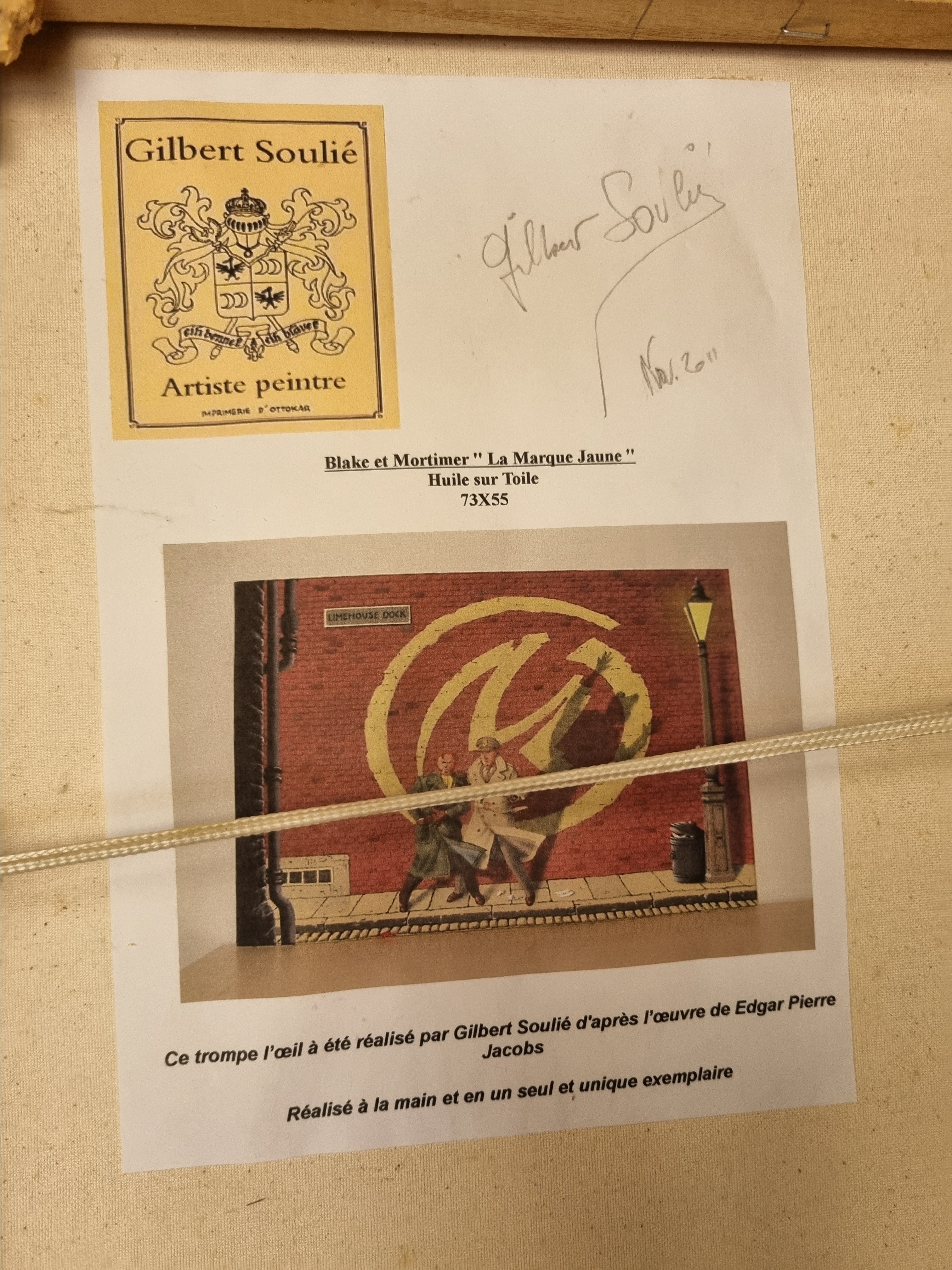 Gilbert Soulié était un peintre qui s'amusait à détourner des couvertures ou planches de héros de BD, notamment du Tintin et du Blake et Mortimer.