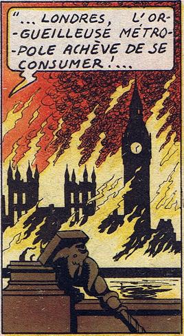 - Planche 8, case 1, la description suivante fait implicitement allusion à la Deuxième Guerre Mondiale : « Berlin, une fois de plus, n'est plus qu'un monceau de ruines fumantes ».