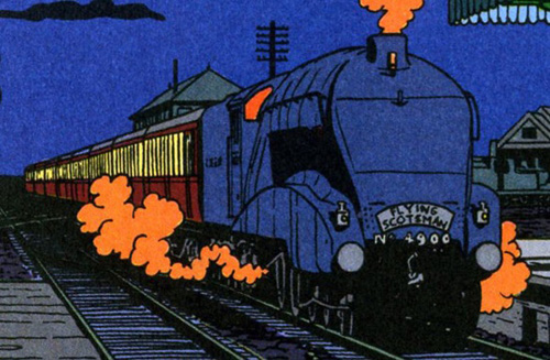 Tu m'as devancé Roberto ;) , car je voudrais juste revenir au Flying Scotsman de Ted Benoit . Le dessin du train est superbe , l'ensemble est parfait , mais il y a quelques petites choses qui clochent quand même .
