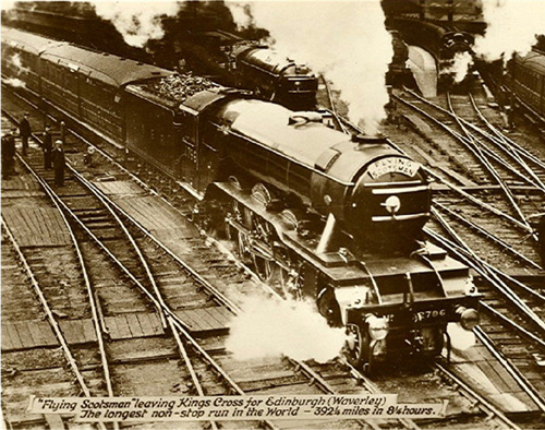 Je n'y connais strictement rien et je salue ton travail, tout à fait bluffant. Cependant, en voulant en apprendre davantage sur le Flying Scotsman je suis tombé sur cette photo de 1948 :