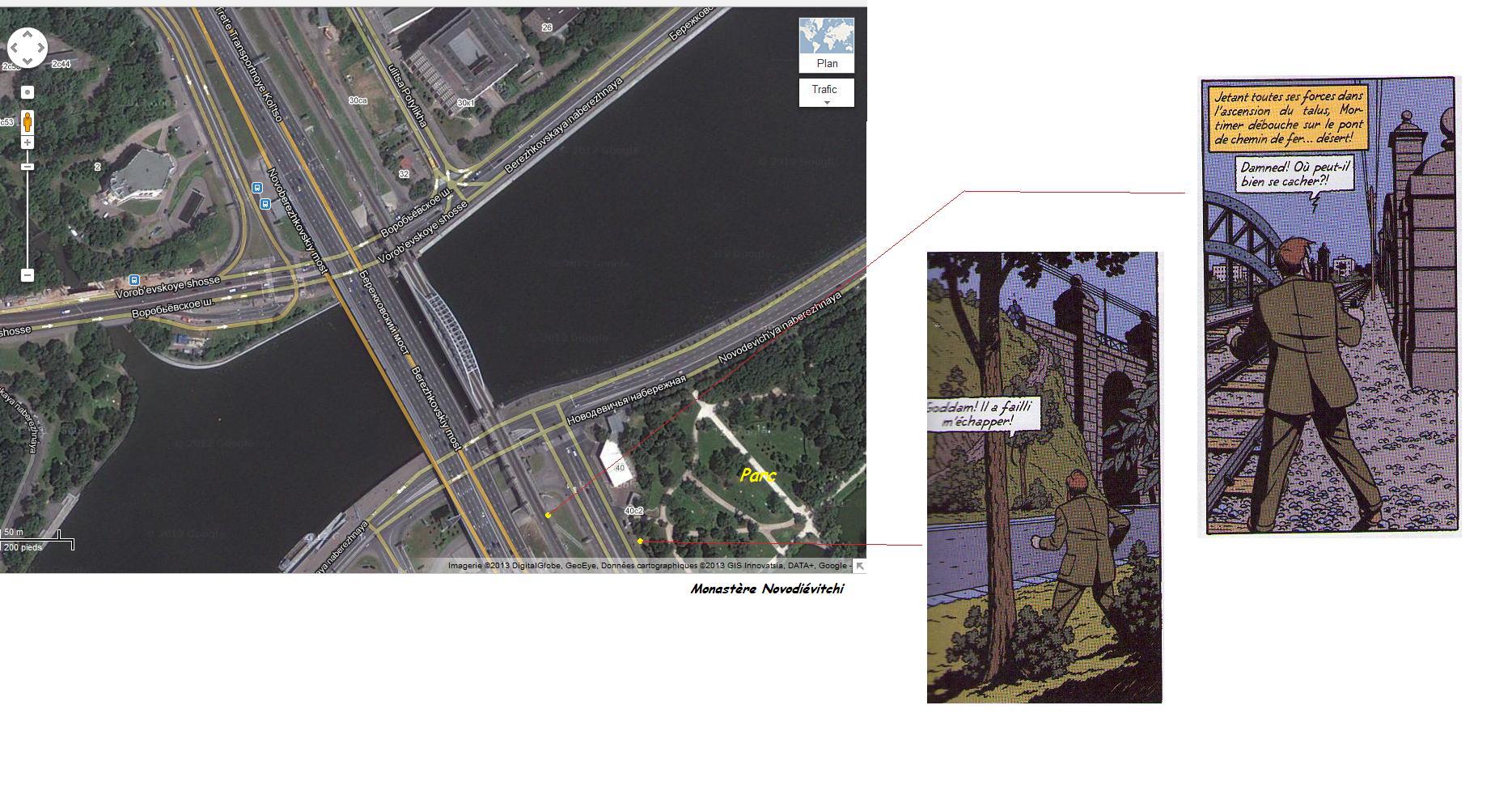 Lesejo a écrit :Archibald son dossier de documentation est excellent. La Planche n ° 31 est assez confuse au sujet de la forme propre de l'action et de son cadrage. Mortimer arrive jusqu’au moitié du pont en cherchant à Olrik. Endroit où celui-ci tombe à la rivière après le coup de poing au menton du professeur.
