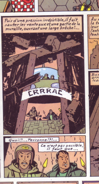 Bonjour à tous ! Quelque chose me choquait, dans la case de "L'Atlantide" montrée sur ce fil, montrant le char défonçant la porte. Si l'onomatopée présente dans les dernières éditions de l'album comporte bien les fameux K, il n'en est pas de même pour les premières éditions (cf image jointe, tirée de mon vieux Lombard).